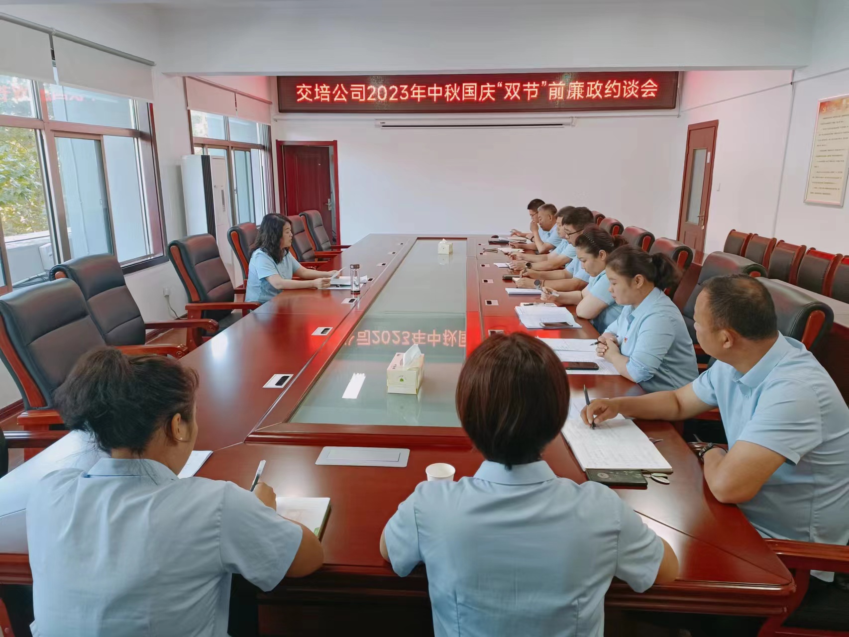 中秋、国庆“双节”将至,为持续深入贯彻落实中央八项规定及实施细则精神,驰而不息纠治“四风”,进一步加强对公司干部职工的教育、管理和监督,提高干部职工廉洁自律意识,大力营造风清气正的节日氛围。根据集团相关工作要求,近日,交培公司集中时间采取单独谈、集体谈相结合的方式,组织开展2023年中秋国庆“双节”前廉政约谈。