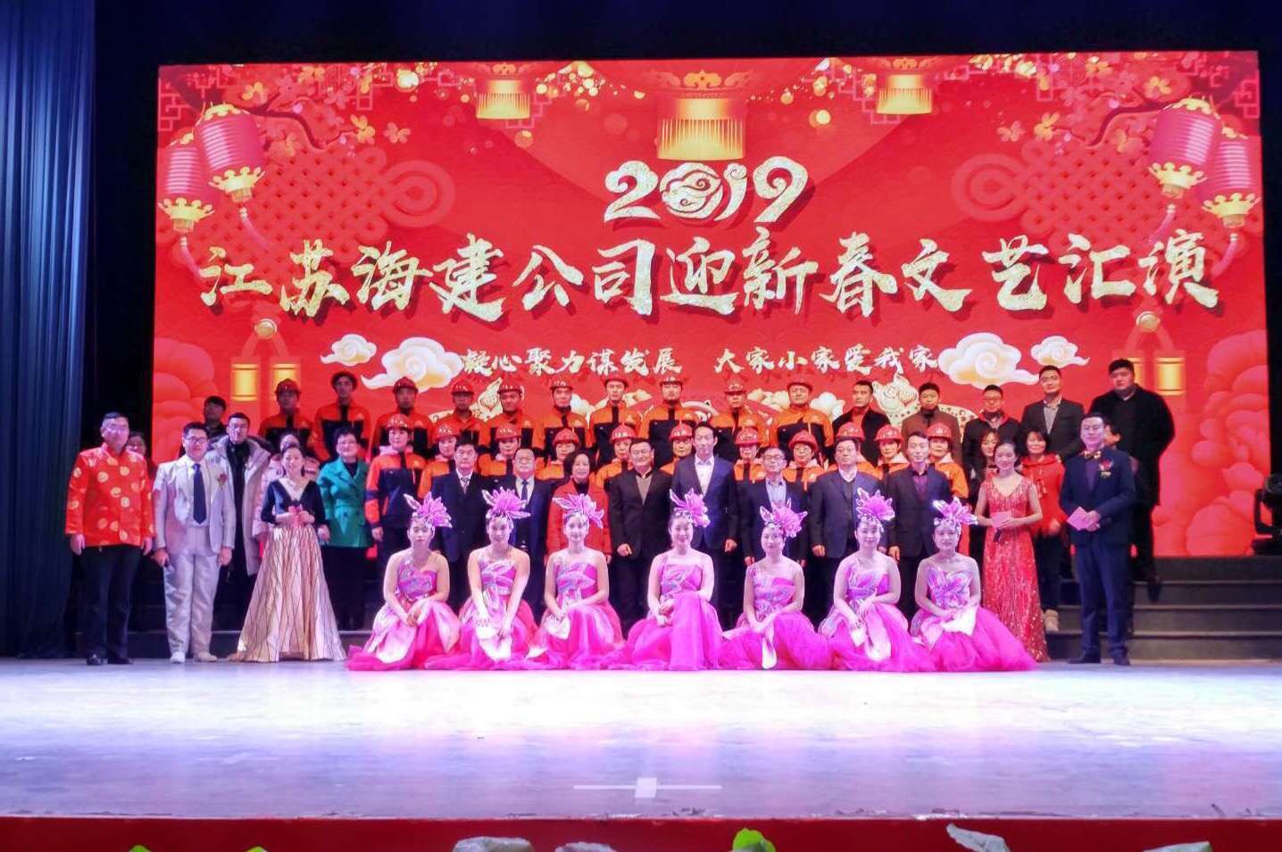 1月20日,江苏海建公司在市群艺馆举办2019年迎新春职工文艺汇演,集团领导、共建单位、合作业务单位以及海建公司领导班子及公司职工代表和职工家属近400人观看演出。