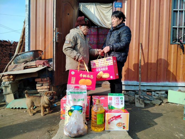 2月6日,2024新春佳节来临之际,好的姐章文彩又再次准备了油、米、牛奶、糕点等慰问品驱车50多公里从连云区赶到赣榆区赣马镇官河村亲切探望李全福老人,详细询问老人的身体状况和生活情况,并把挂念和祝福送到老人的心坎上。