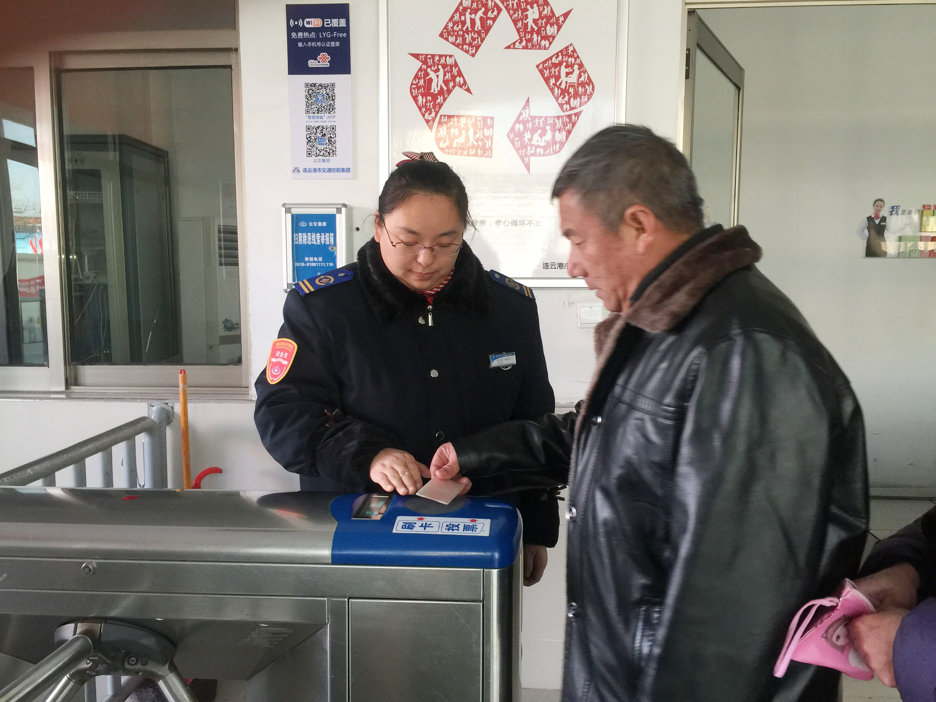 自从来到公交集团快速公司站务员这个温暖的大家庭中,几乎每天都有好人好事在我身边发生。前不久,海州站站务员苏丹就在帮助了前来坐车的一位女生,那天正好是遇上天气降温,一位女生来到海州站准备上车回家,在站台的售票口买票的时候,站务员苏丹就发现了女生的不对劲,她脸色比较苍白,一直在咳嗽,车辆到站时乘客陆续都上了车,但女生还是坐在站台的长椅上没有动,苏丹注意到女生的状态不太好,就走到女生的面前轻声问道:“你好小妹妹,看你脸色不是太好,你是不是哪里觉得不太舒服啊?”女生虚弱的说她好像有点发烧了,头比较疼,想等家人来接她,但手机又没带。苏丹立刻去站房倒了一杯热水给女生并把自己带的厚外套给女生披上了,还细心的询问了女生父母的联系方式,拿出手机帮助女生联系了她的家人,不久,女生的母亲匆匆赶来,临走时非常感谢苏丹的帮助,苏丹微微一笑,说了句:“不客气,这是我应该做的”。
