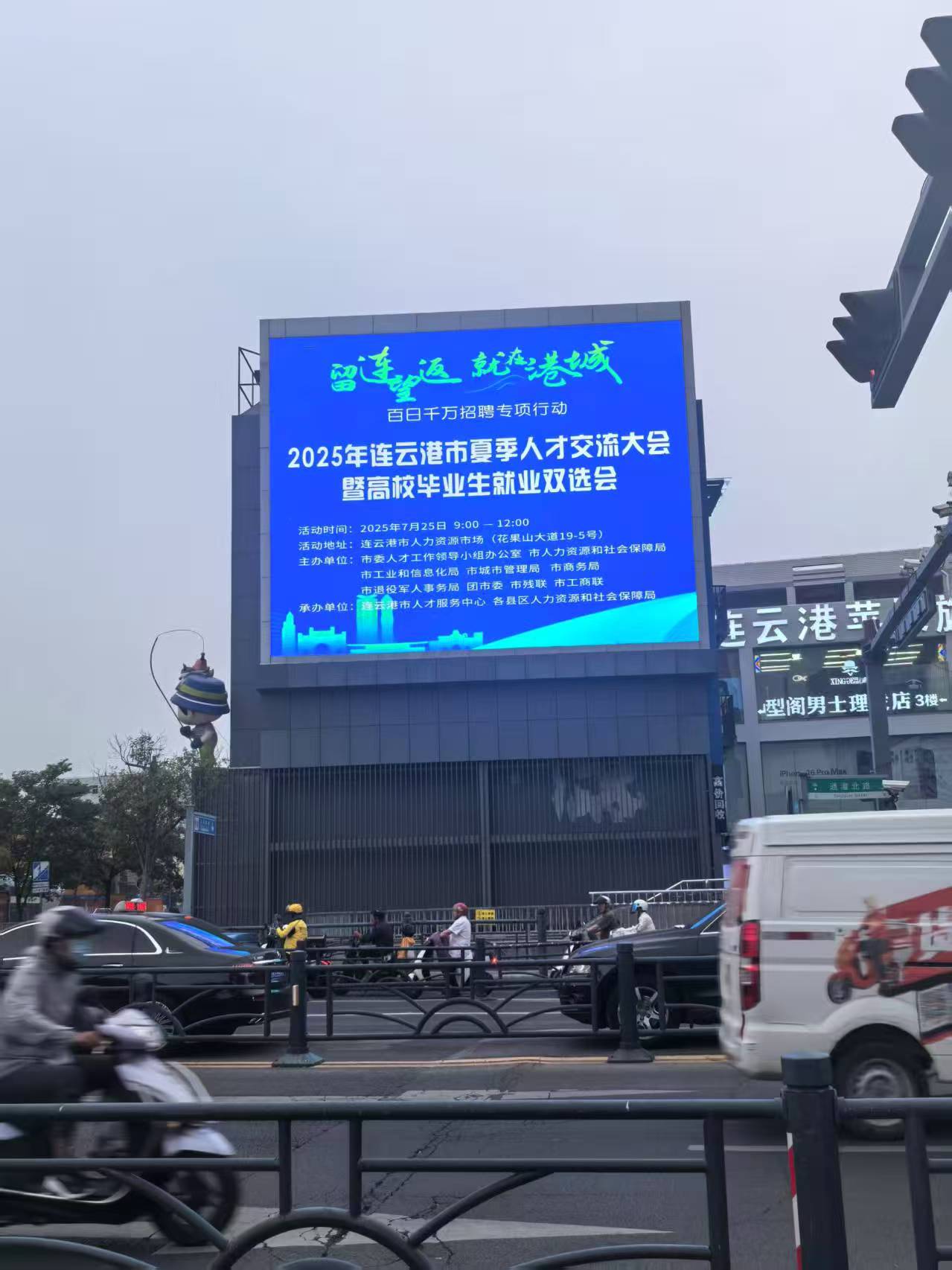 交通集团积极响应市人才服务中心号召,充分发挥城市公共服务优势,依托全市90座主要道路常规公交站亭条形电子屏和海鸥广场电子大屏,滚动发布“2025夏季人才交流大会于7月25日上午在市人力资源市场(花果山大道19号)举办”等宣传标语,宣传点位精准覆盖市区核心商圈、交通枢纽及居民集中区域,确保信息传播效果最大化,吸引更多求职者和企业参与,有效提升大会社会关注度。