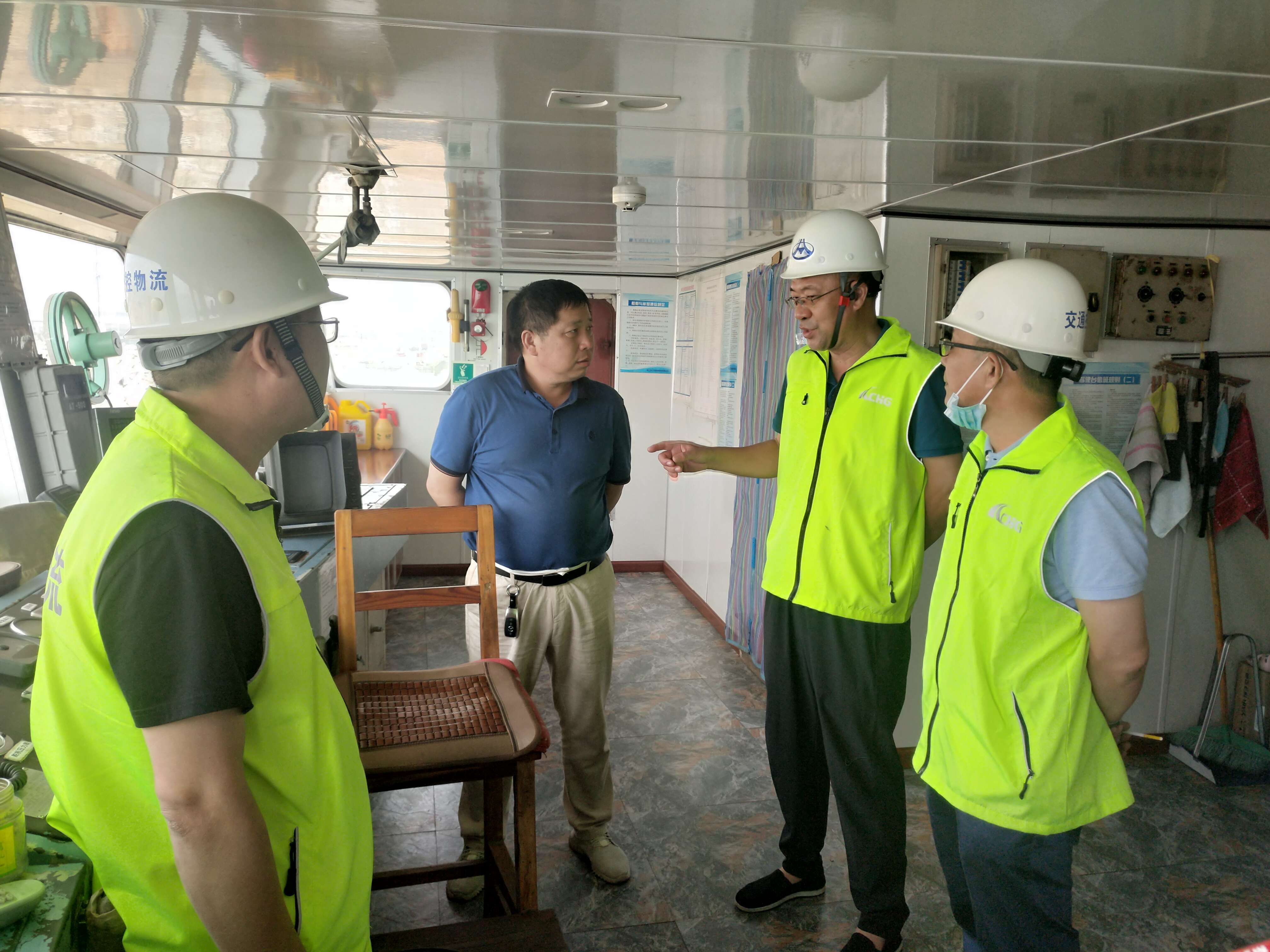 8月11日,交通控股集团副总经理孙超,安全监管部部长茅红兵一行赴岚山港项目建设码头登上物流云济公司属船舶“有源28”轮就安全生产情况展开现场督查和指导,并慰问了高温天气下坚守作业一线的船员们,为他们送去了饮品、西瓜等防暑降温物品。物流集团副总经理、云济公司总经理左志军及相关人员参与检查。