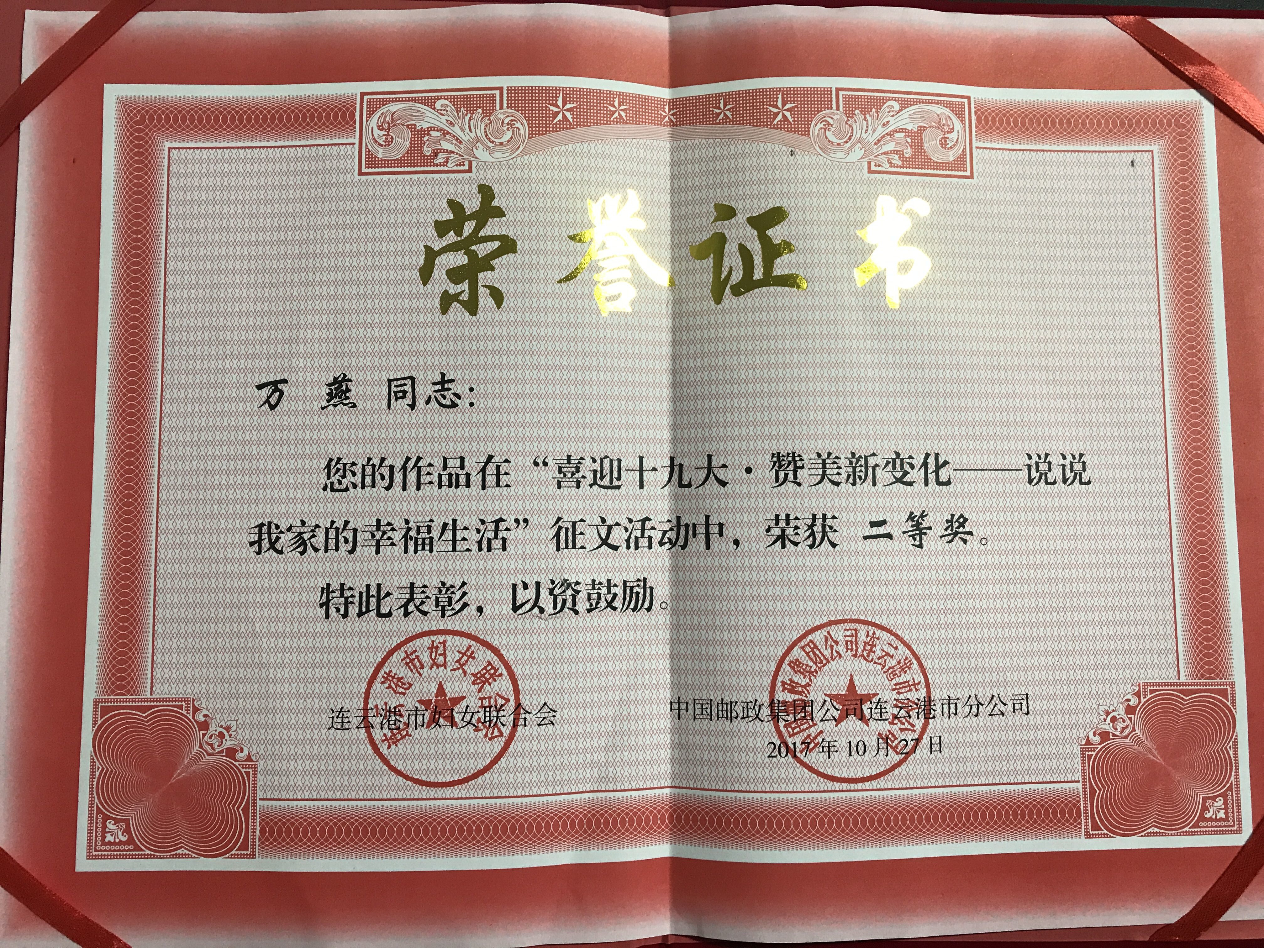 为充分展示连云港市在十八大以来各行各业的丰硕成果,赞颂家乡的美丽风光,让大家深切感受到各个家庭的巨大变化,激发全市人民以更加饱满的精神状态迎接党的十九大胜利召开,市妇联和连云港邮政依托“连网”平台共同开展“喜迎十九大·赞美新变化——说说我家的幸福生活”为主题的网络征文大赛。