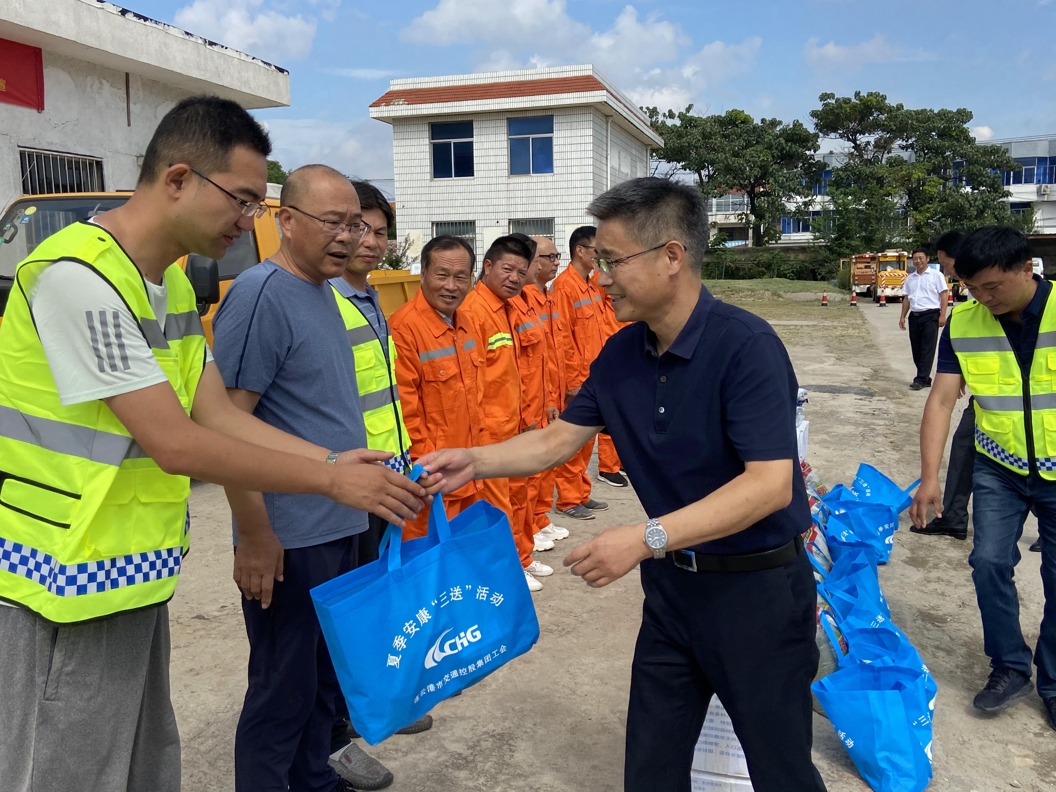 刘永能等先后来到汽车总站、长途公司、公交站、加气站、充电站、出租车场站、交通驾校训练场、丰达猴嘴养护工区、石梁河生态修复工程、海建公司江苏大道工程施工现场,为他们送去绿豆、白糖、矿泉水、香皂、毛巾、花露水等防暑降温慰问品。刘永能在现场详细了解询问一线干部职工生产生活情况,叮嘱大家在干好工作的同时,合理调整工作时间,注意饮食卫生和防控防疫,在确保身体健康安全的前提下顺利完成生产工作任务。