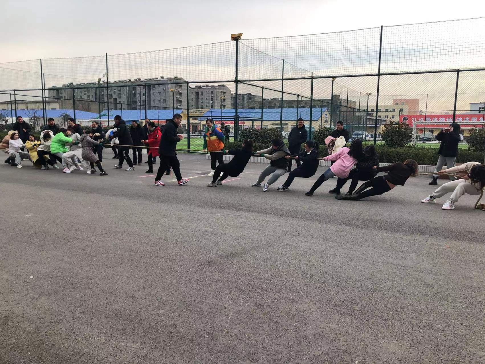 拔河比赛分东西校区两个场地进行,通过微信平台进行互动,同步交流比赛情况。比赛过程中,队员们一个个摩拳擦掌,排好了阵势。当比赛开始的哨声响起,参赛队员们全都紧握绳子,憋足了劲把绳子往后拉。阴冷的寒风不曾摧跨队员们的意志,强大的对手不会削弱队员们的信心,艰难的比赛不能消磨队员们的勇气。最终角逐出一等奖两队,二等奖两队,三等奖一队。