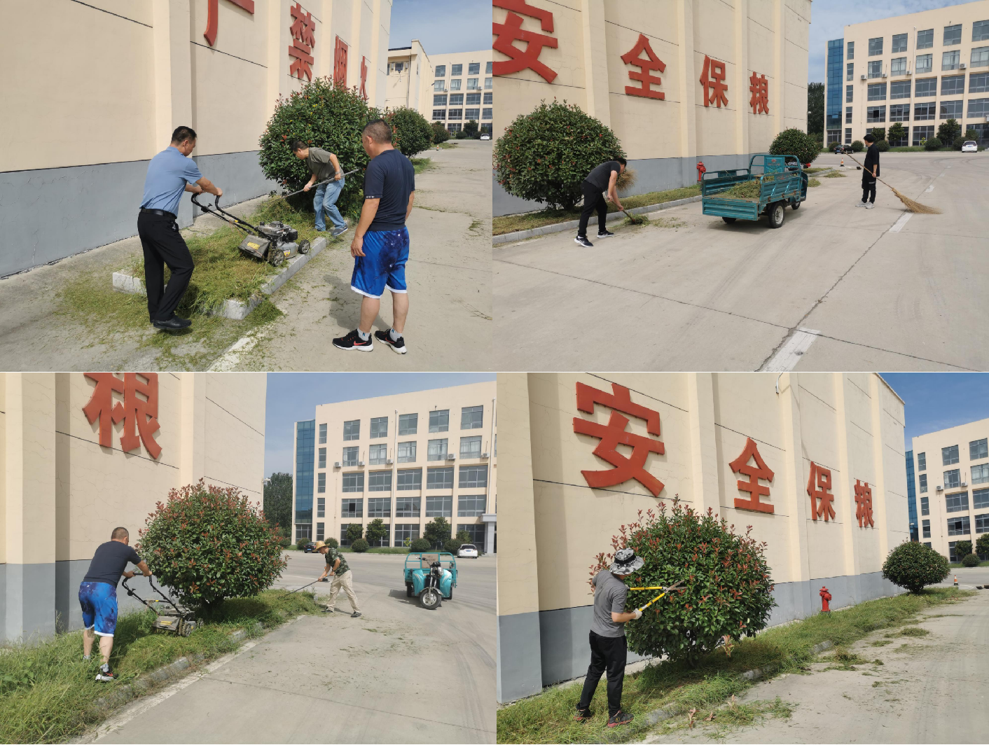 整治期间,和茂公司领导班子带领全体职工齐上手,在清理垃圾、污水、杂草的同时,彻底清除了仓库周围的杂草,办公室、宿舍做到干净整洁,不留安全隐患。彻底疏通清理了仓库,办公室,宿舍的水沟等排水设施,确保排水畅通不留污水,库区不内涝;对用电线路进行一次全面梳理,对插座等设施进行全面检查,有破损的进行了及时更换。