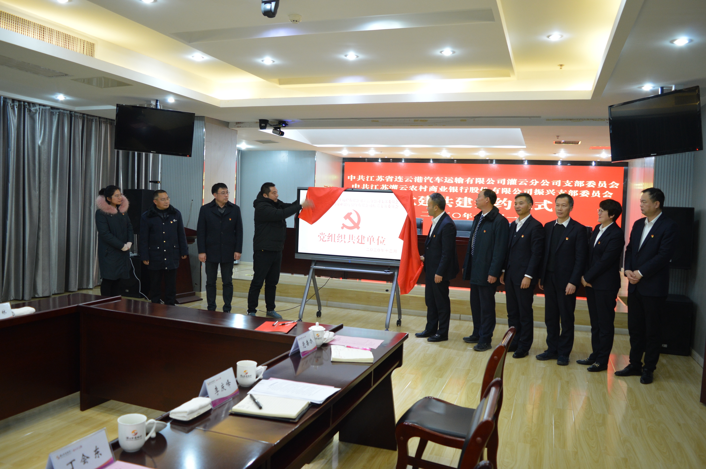 12月1日下午,灌云公司党支部与县农商银行振兴党支部举行“党建共建”签约仪式。县农商银行党委书记、董事长王良新,党委副书记、行长贾雷,纪委书记、监事长丁会东等农商银行相关部门负责人出席活动。灌云公司党支部副书记、副经理(主持)高兵、副经理张洪伟参加签约仪式。