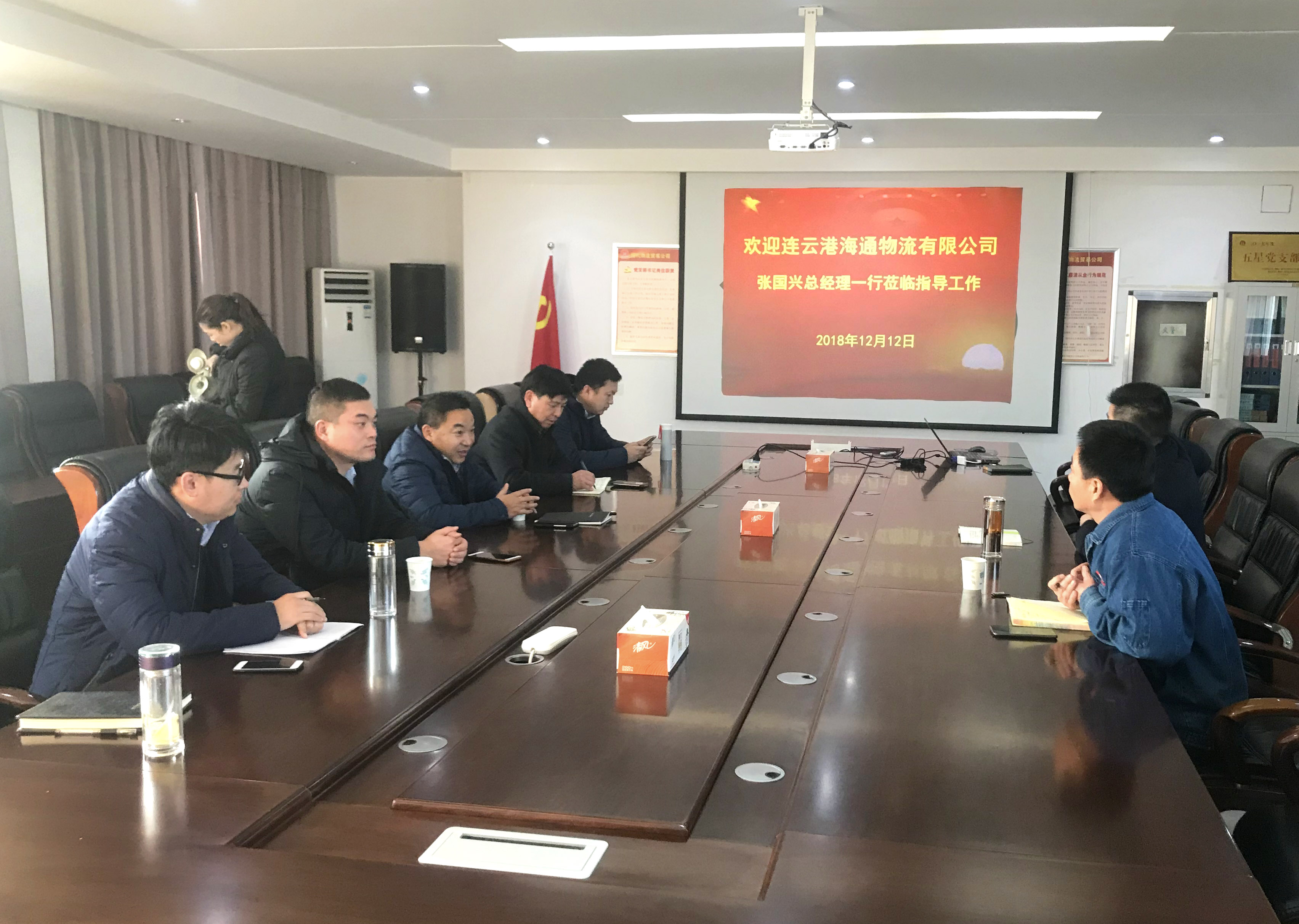 12月12日,物流公司党委书记、总经理张国兴带队造访淮北矿业集团滁州华塑物流有限公司,双方就进一步合作展开洽谈,淮北矿业集团滁州华塑物流有限公司总经理张道春热情接待。物流公司副总经理仲济强、杨维洲,市场部经理于振国,物流翔安公司总经理陈雷随行考察参观。