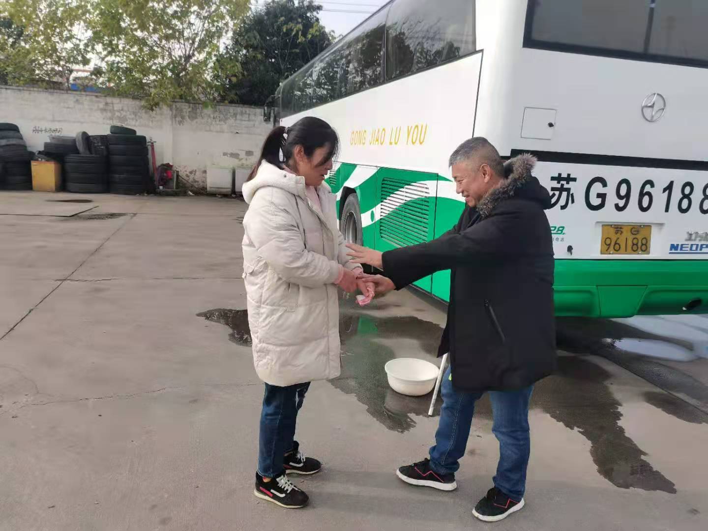 当天上午11:40时许,长途公司公交旅游苏G96188驾驶员李权行至终点站打扫车厢卫生时,发现后门前方的座位下有一个钱包。李师傅打开发现钱包内有身份证、银行卡、市民卡等,内层还有300元现金,于是李师傅便将钱包妥善保管起来,并打电话给车队值班人员汇报拾到钱包和钱包内物品一事,让车队值班人员通过身份证信息寻找失主。就在车队值班人员通过身份证信息准备寻找失主时,失主徐女士打来电话询问是否有人捡到钱包。得知自己的钱包被驾驶员捡到后,并在原地等她领取失物,徐女士非常开心。