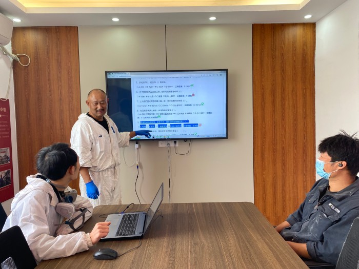 生产班组收笔“生态绿”,凸显发展亮色。生产班组主动细化服务流程,优化服务规范。加强车辆保养服务透明化、喷漆流程规范化,积极建设汽修绿岛,探索“绿色共享、低碳环保,智能高效”的钣喷中心,助推汽车维修行业大气污染防治工作,打好蓝天保卫战,推动汽车维修行业绿色发展。生产班组加强员工能力培养,提高服务水平。开展新能源汽车维修”线上知识培训和“传帮带”师徒带教模式,积极参加全市技能竞赛和维修技术交流会等,增加班组成员之间、班组与行业协会的交流。生产班组强化师带徒效果,巩固发展 “师带徒” 模式,推行何锡忠 “五心” 传带工作法,培养漆艺工匠型人才,努力将技术人才向工匠、管理人才转化。生产小组开展服务质量“零差评”活动,秉承“喷漆用料好、喷漆工艺好、服务态度好”“三好”理念,打造漆艺精品,建立修理完成3日内回访制度,开展客户满意度调查,倒逼进一步提高标准、培养一流品牌。