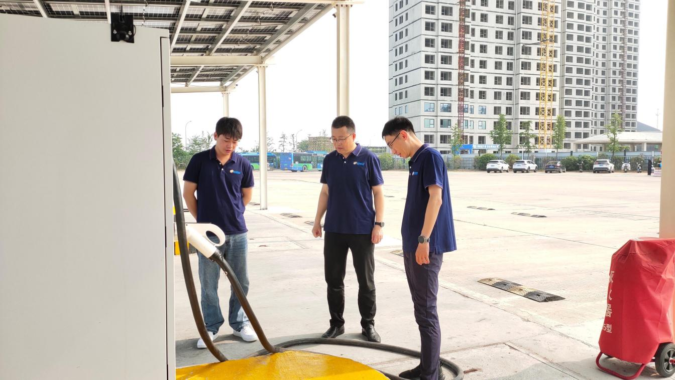 在充电区,王平带领检查组以“不留死角”的严谨态度,对每一处关键设施展开细致排查。王平在检查中强调:“高温环境下,设备安全性能面临严峻挑战,必须确保所有安全装置灵敏可靠。”在员工休息区,王平关切询问一线员工防暑降温措施落实情况,并检查了应急药品箱配备的防暑药品是否齐全有效。他叮嘱场站负责人,务必把员工健康放在首位,科学排班、保障休息、足量供应清凉饮品与应急药品,筑牢安全生产的“人力堤坝”。结束现场检查后,王平召集场站管理人员,对此次“高温体检”发现的问题进行了集中梳理,要求迅速建立整改台账,明确责任人与完成时限,确保问题闭环管理。他指出:“安全之弦任何时候都不能松懈。面对持续高温考验,我们必须把日常巡查做细做实,对隐患‘零容忍’,将各项预案演练到位,确保场站安全平稳运行。”