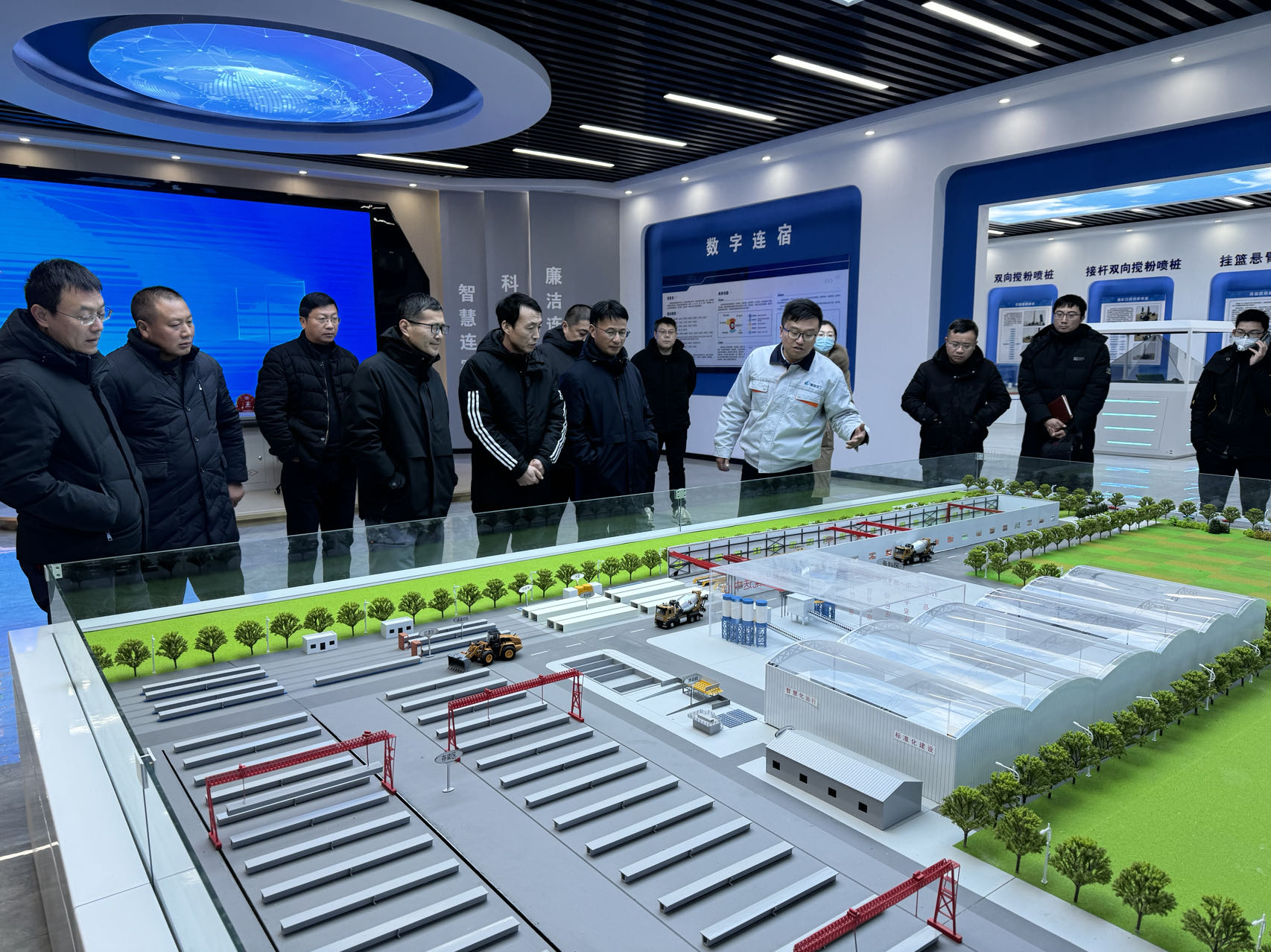 在随后进行的交流活动中,参观人员来到南京交通工程有限公司连宿高速5标项目部驻地,详细了解了工地试验室的建设、施工现场管理、智慧工地技术的应用,并进行沉浸式安全VR体验、安全实操教学、信息化移动台座和智能液压样板专项学习。