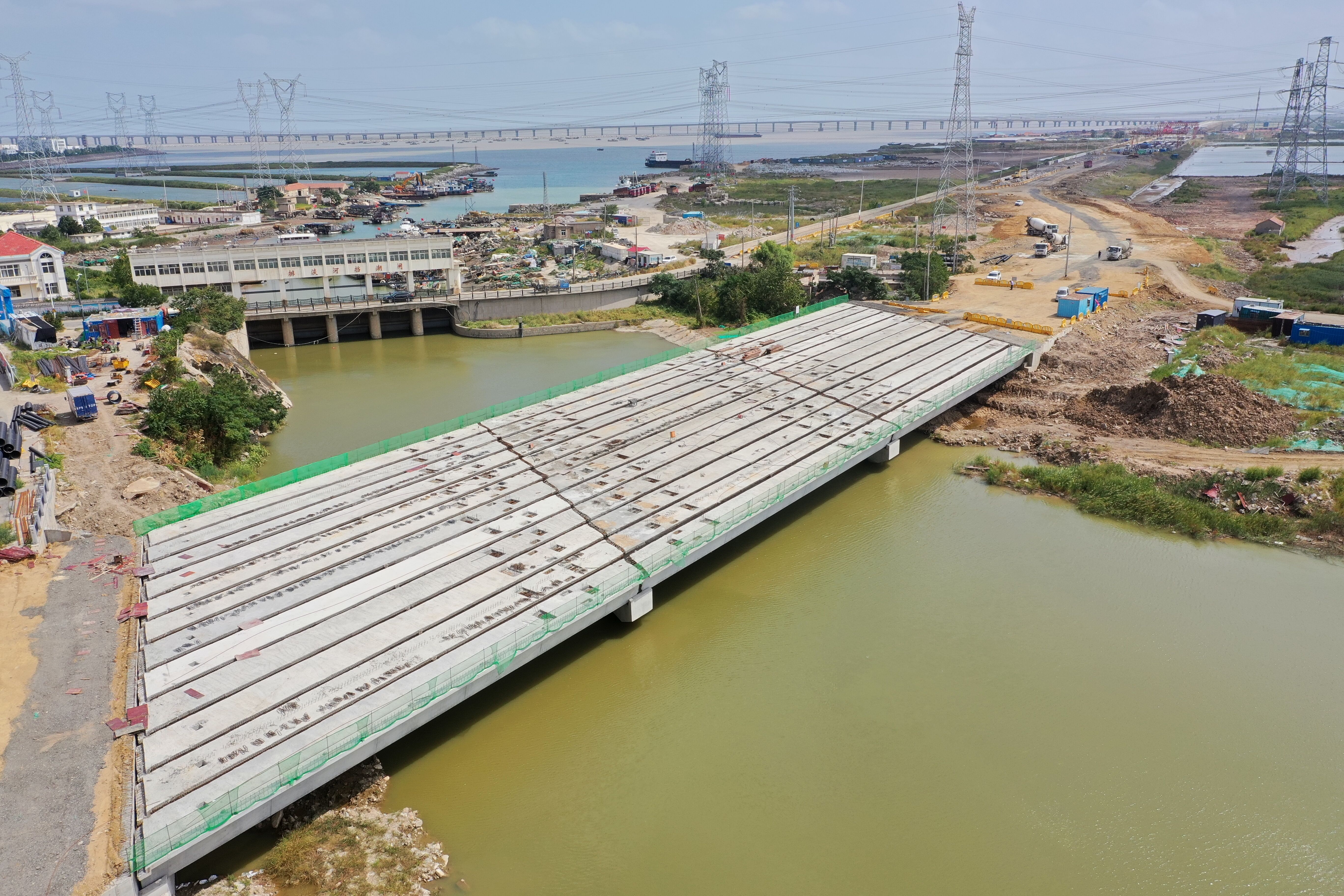 由市交通集团承建的宿徐路排淡河大桥位于宿徐路(云宿路徐圩支线)工程起点处,与云宿路相交,全长115.648m,桥面宽度35m,采用三跨过河的布置形式,按双向六车道城市主干路和40km/h设计时速标准建设。自今年8月下旬开始进行箱梁架设工程,经过19天的连续奋战,克服了工期紧张、安全风险高等诸多不利因素,圆满完成桥梁架设。全体建设人员加班加点,精心组织、科学管理,合理安排架梁施工中提、运、架各个环节,强化安全质量控制意识,确保了大桥安全质量平稳可控。