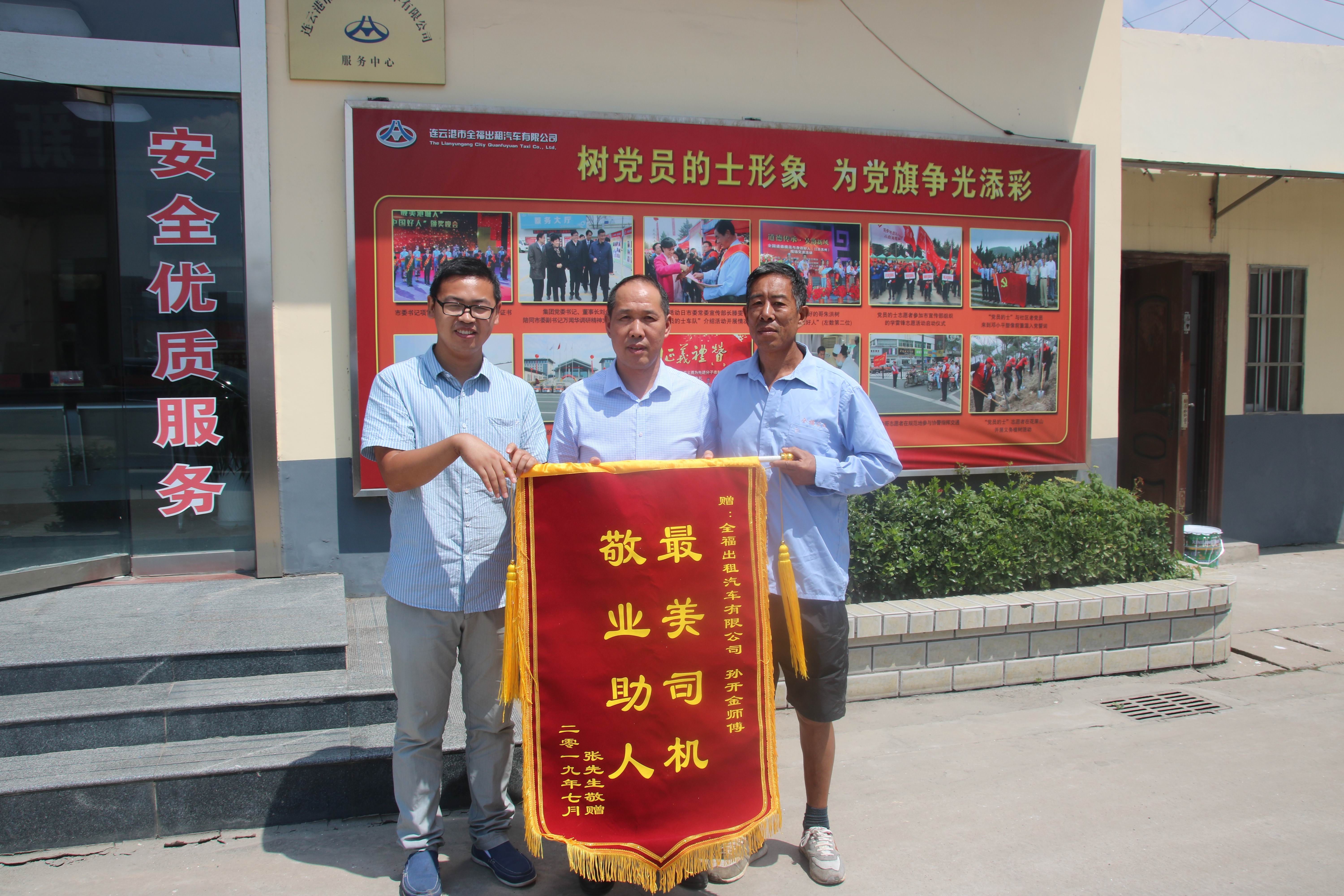 8月20日上午,市民吴先生来到全福出租公司,将一面印着“最美司机 敬业助人”锦旗送到了苏G53992孙开金师傅的手中。吴先生激动地握着孙师傅的手说道:“真的要给孙师傅您竖个大拇指,您是港城好的哥的代表。我能及时得到医治,多亏了您,正是因为这样,我现在才能安然无恙,真的很感谢您,是您们,让我们生活的这座城市又多了一些温度。”