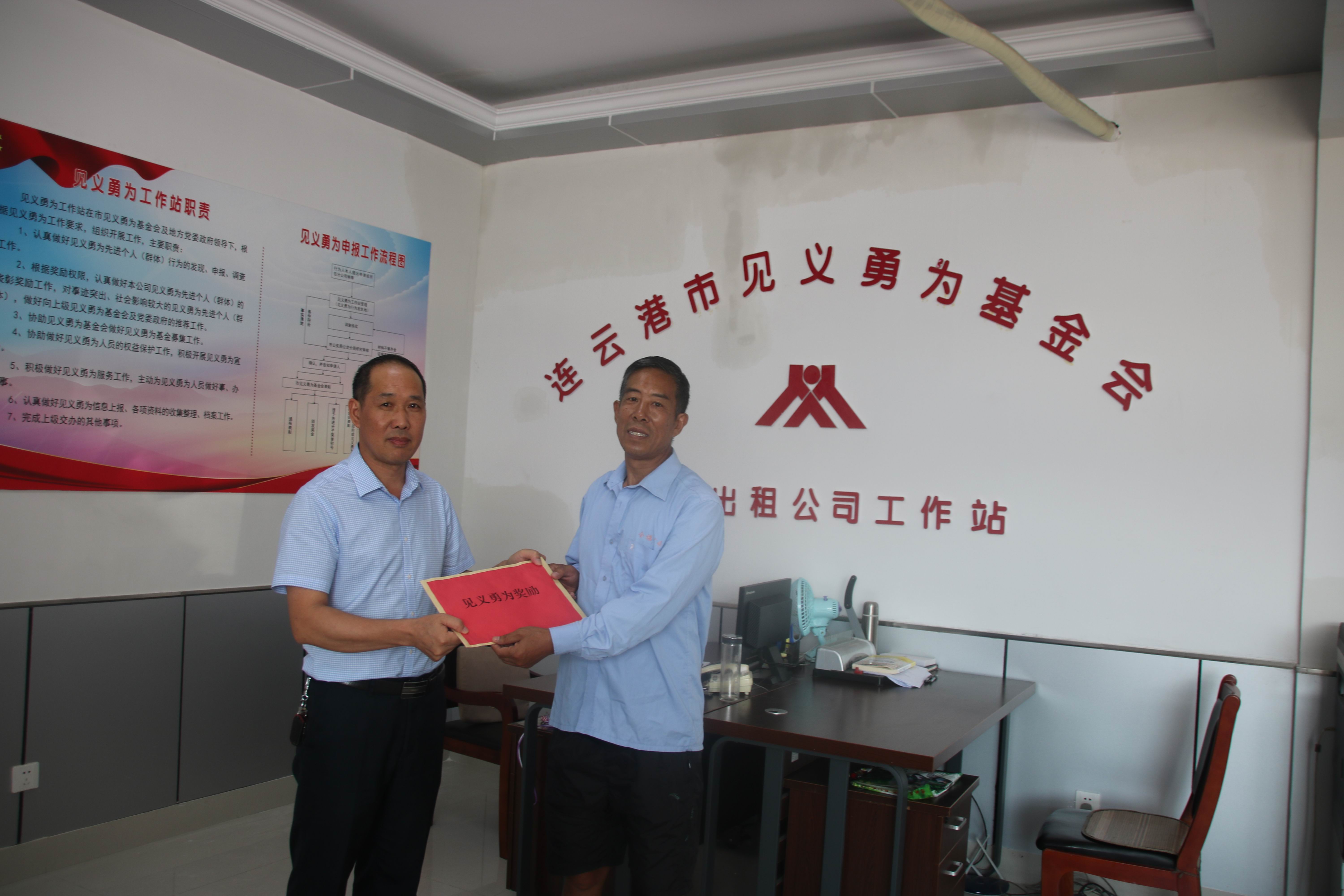 全福公司经研究决定授予孙开金师傅见义勇为先进个人,并给予奖励现金500元。积极弘扬社会正能量,发扬见义勇为精神,提升全体出租车驾驶员服务水平和质量,为港城市民安全文明出行做贡献。