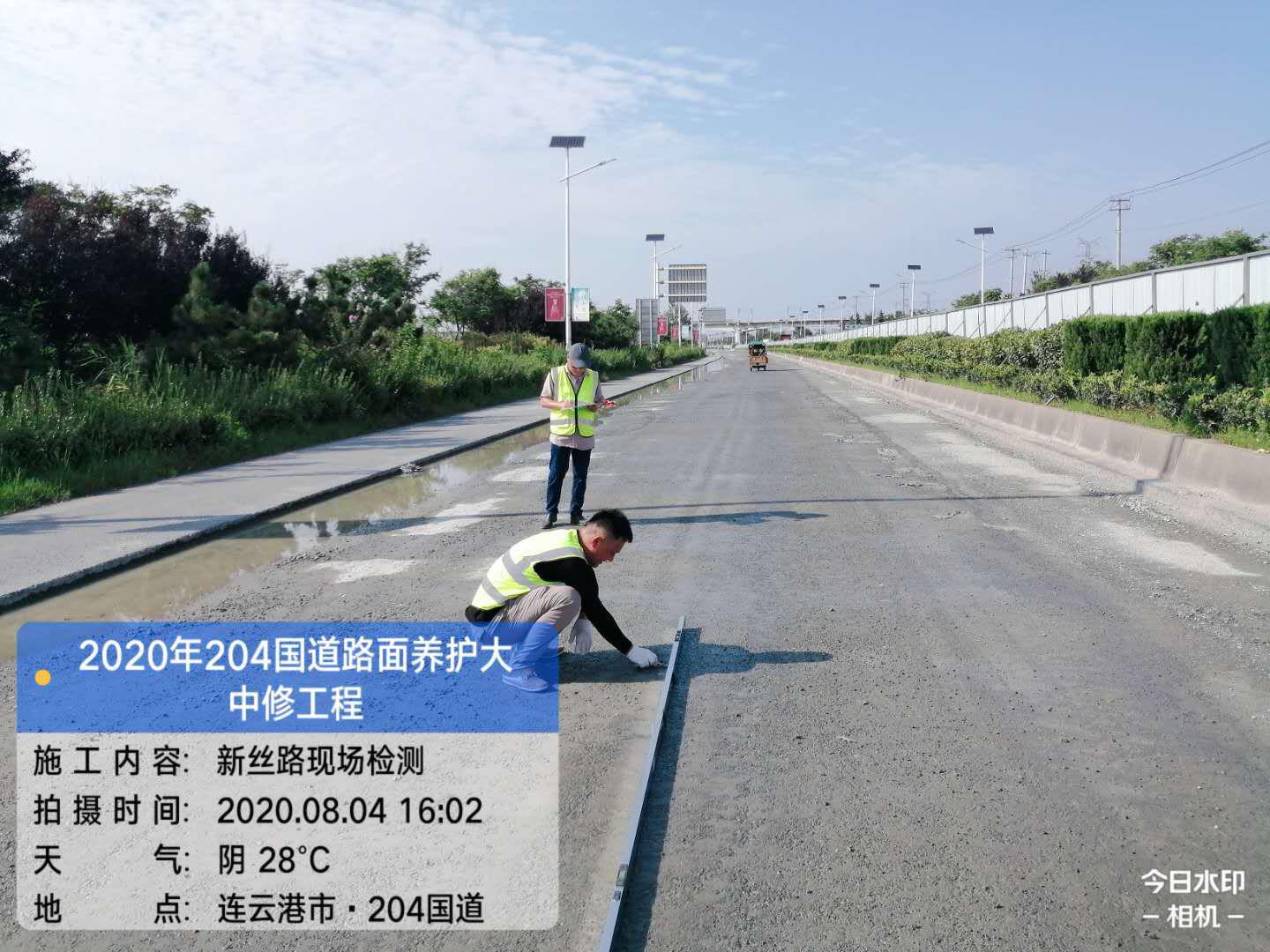 江苏海建新丝路检测公司进行204国道养护大中修项目质量监督检测