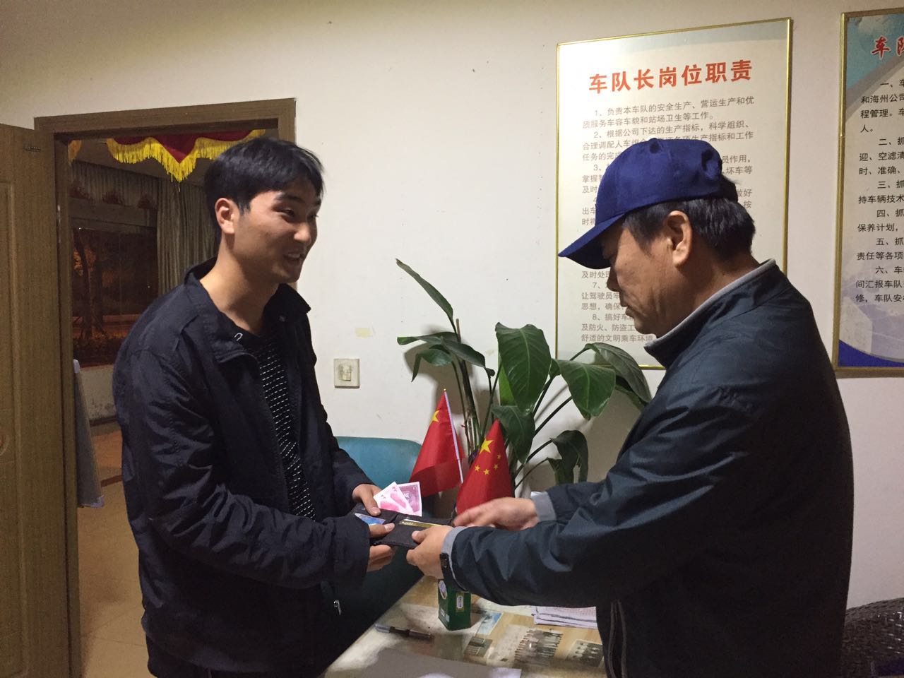 张师傅立即将钱包交给车队,并协调通知二级平台联系失主。大约一小时后,失主章先生在得到确切回复信息后,来到三车队顺利将钱包领回。章先生表示,由于自己的大意将钱包丢在了公交车上,虽然钱包里面现金不多,但是重要的证件都在里面,十分感谢驾驶员张师傅,并一再表示请车队转达他对驾驶员张洪亮的感激之情,对他拾金不昧的品德深表钦佩,并写表扬信一封,以示真诚的谢意。