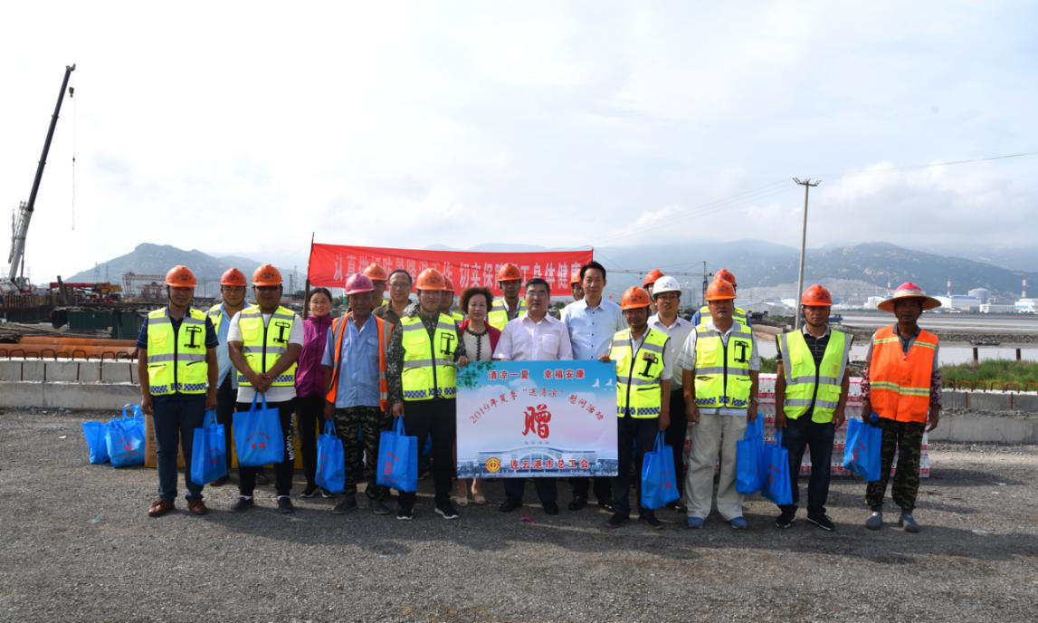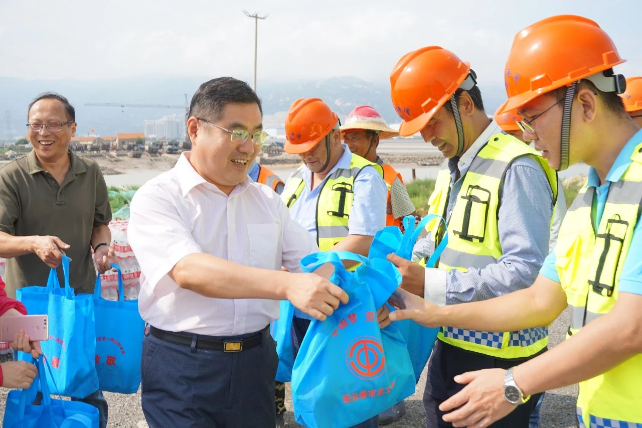 8月6日,市总工会副主席陈健一行到集团权属单位江苏海建公司宿徐路项目部施工现场开展送清凉活动,集团工会主席王中永及相关部门负责人参与慰问。