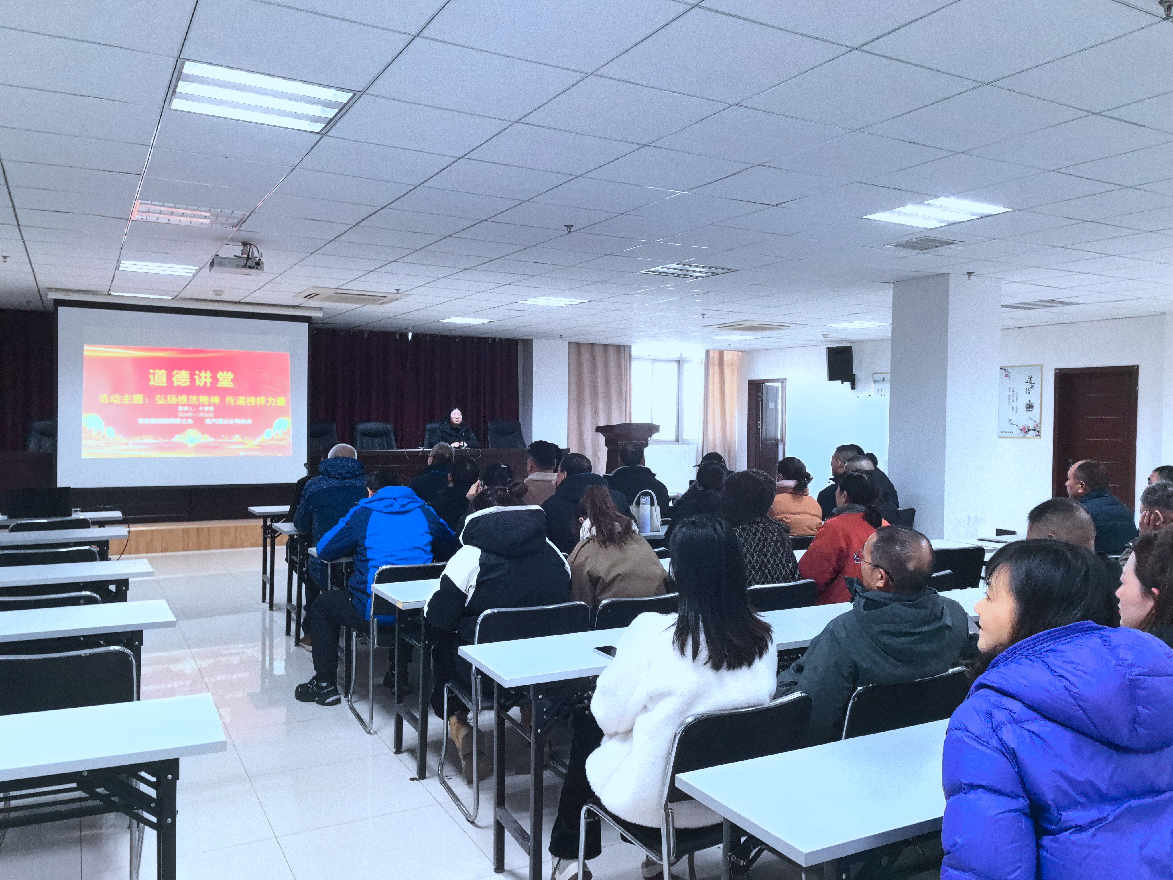 1126日,连汽灌云公司举办“弘扬模范精神 传递榜样力量”为主题的道德讲堂。公司党员干部职工40余人参加活动。