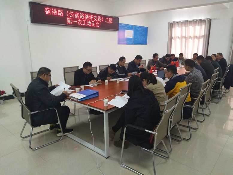 2017年10月24日,市科晶建设有限公司在徐宿路工程项目经理部组织召开第一次工地例会,宿徐路项目建设办、江苏新时代工程项目管理有限公司、中设设计集团、市科力监理、江苏海通建设公司项目经理、总监、相关负责人及代表参加了会议。首先建设单位宣读监理授权书,对项目前期情况及征收进展做了详细的介绍,接着,施工单位对施工前期准备、现场人员、设备投入及工程总体计划安排进行了介绍,随后,监理、审计等单位对施工准备情况进行了点评,并对项目档案管理、项目用表、工程报验程序、隐蔽工程验收程序等提出相关建议和要求,然后,建设办的相关领导从工程质量、安全、进度及廉政建设提出具体要求。