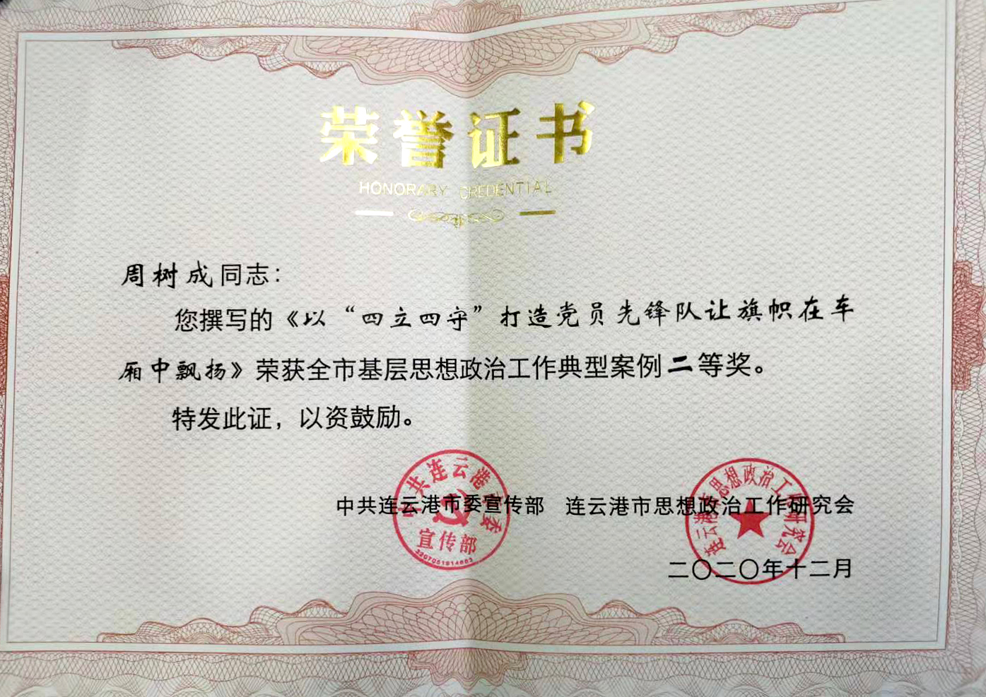 “全市基层思想政治工作典型案例”活动中,集团权属汽车公司周树成、交通集团朱妍秋获二等奖,海建公司胡维荣荣获三等奖。