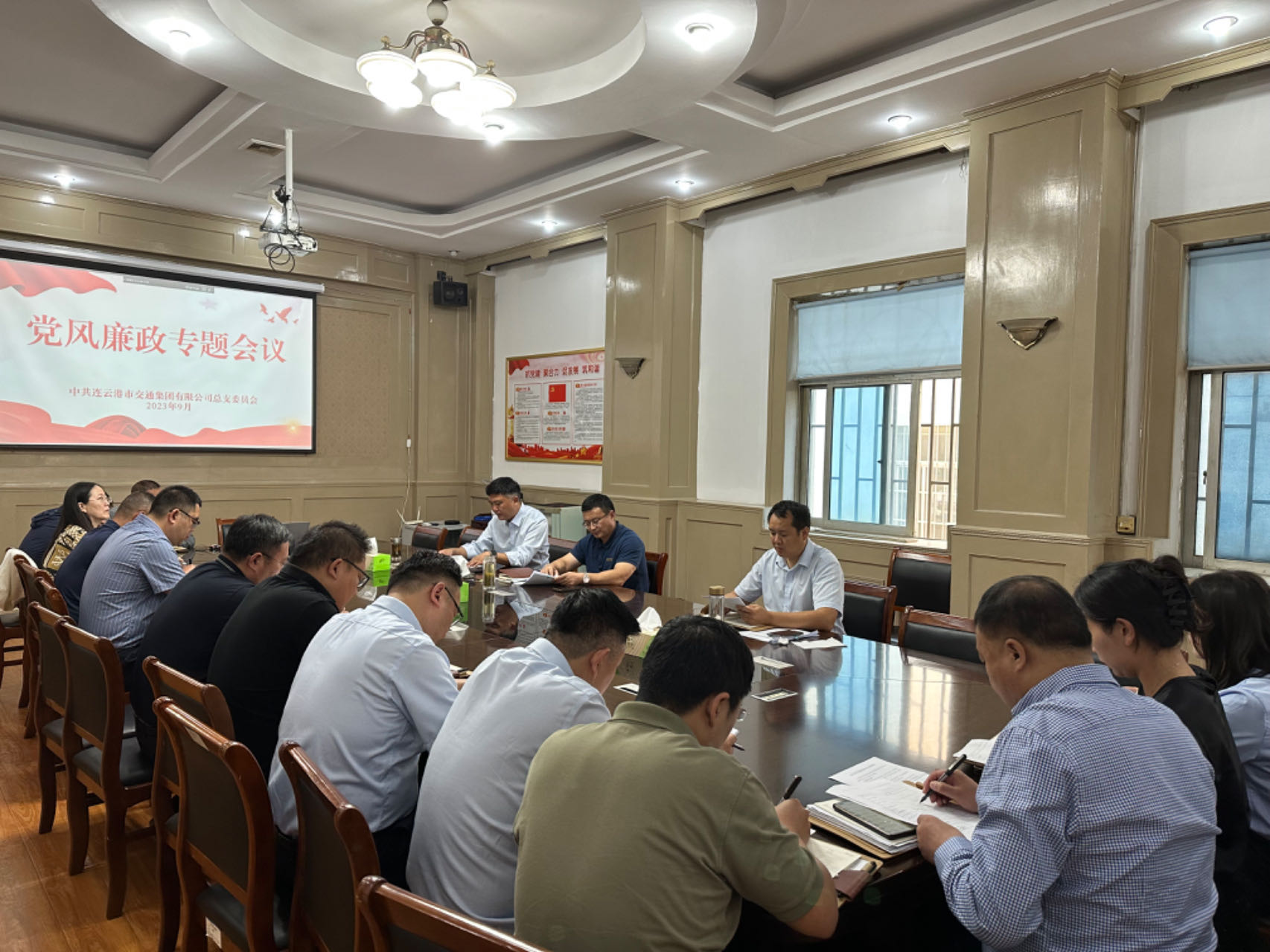会上先后传达江苏省纪委监委《关于五起违规吃喝典型问题的通报》和连云港市纪委监委《五起违反中央八项规定精神典型问题的通报》,并由戴衡传达《2023年中秋、国庆节点纠“四风”树新风工作提示》。
