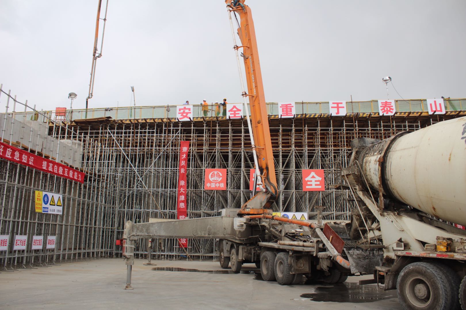 6月28日,连云港市242省道朝阳互通与陇海铁路交叉工程首片现浇连续箱梁顺利浇筑。