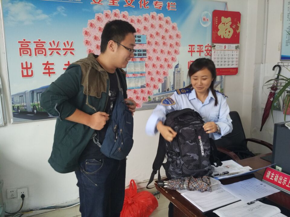 乘客高先生乘坐B1K线在五羊路站下车时,不慎将一个黑色背包丢失在车上,包内有一台笔记本电脑、一些衣服和食物。当驾驶员到达西城公交总站检查车辆时,无意中在前后座位间的夹缝处发现包包,及时上交于值班调度。