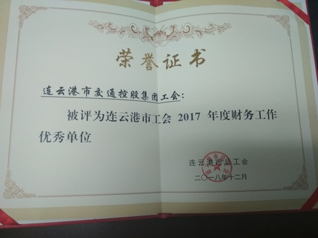 年度工会财务工作互查互助活动中,交通控股集团工会被评为“连云港市工会