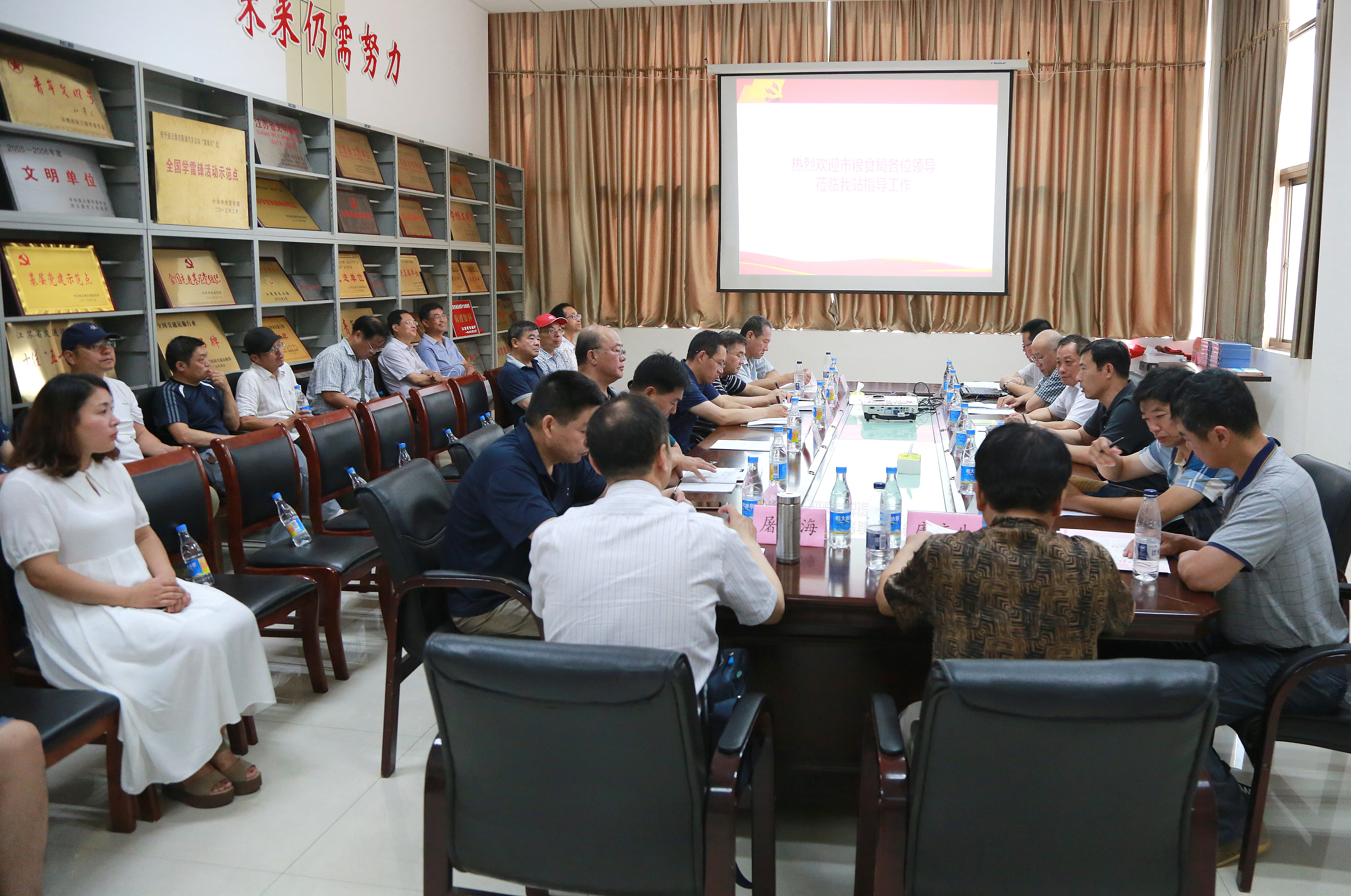 7月20日上午,市粮食局党委副书记欧严峻带领市粮食系统30多名党员干部来集团考察交流党建工作。集团党委副书记陈金师参与考察。