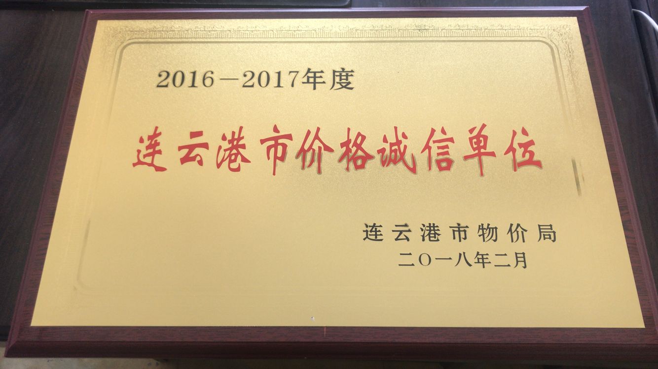 为加强东海分公司价格诚信建设,营造诚信经营环境,东海分公司按照连云港市价格诚信单位创建要求,认真开展创建工作,严格执行物价部门票价管理规定,坚持以诚信为本,未发生过价格投诉事件。经过物价局初审、抽查、考核、公示后,东海分公司被评为2016-2017年度“连云港市价格诚信单位”。