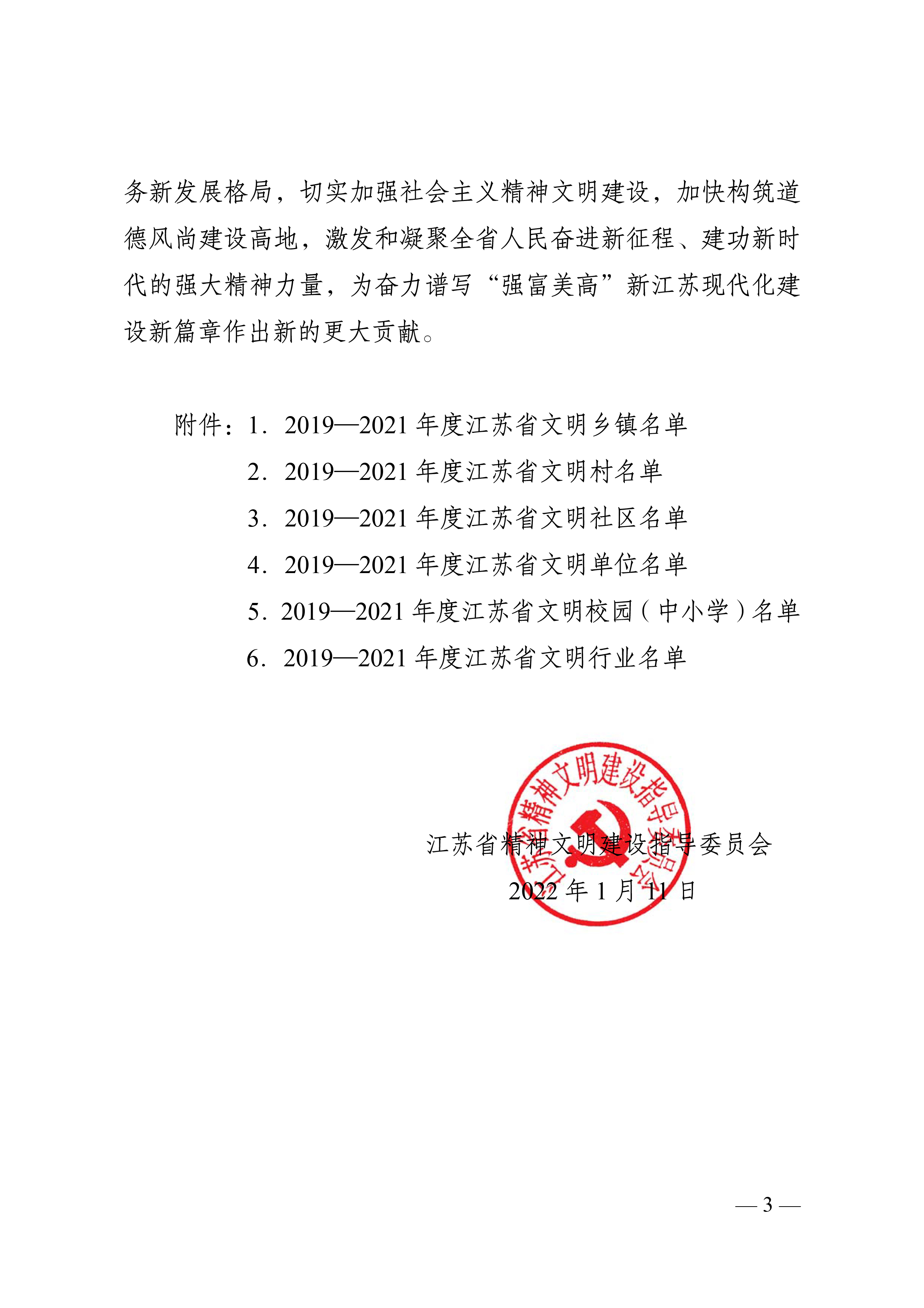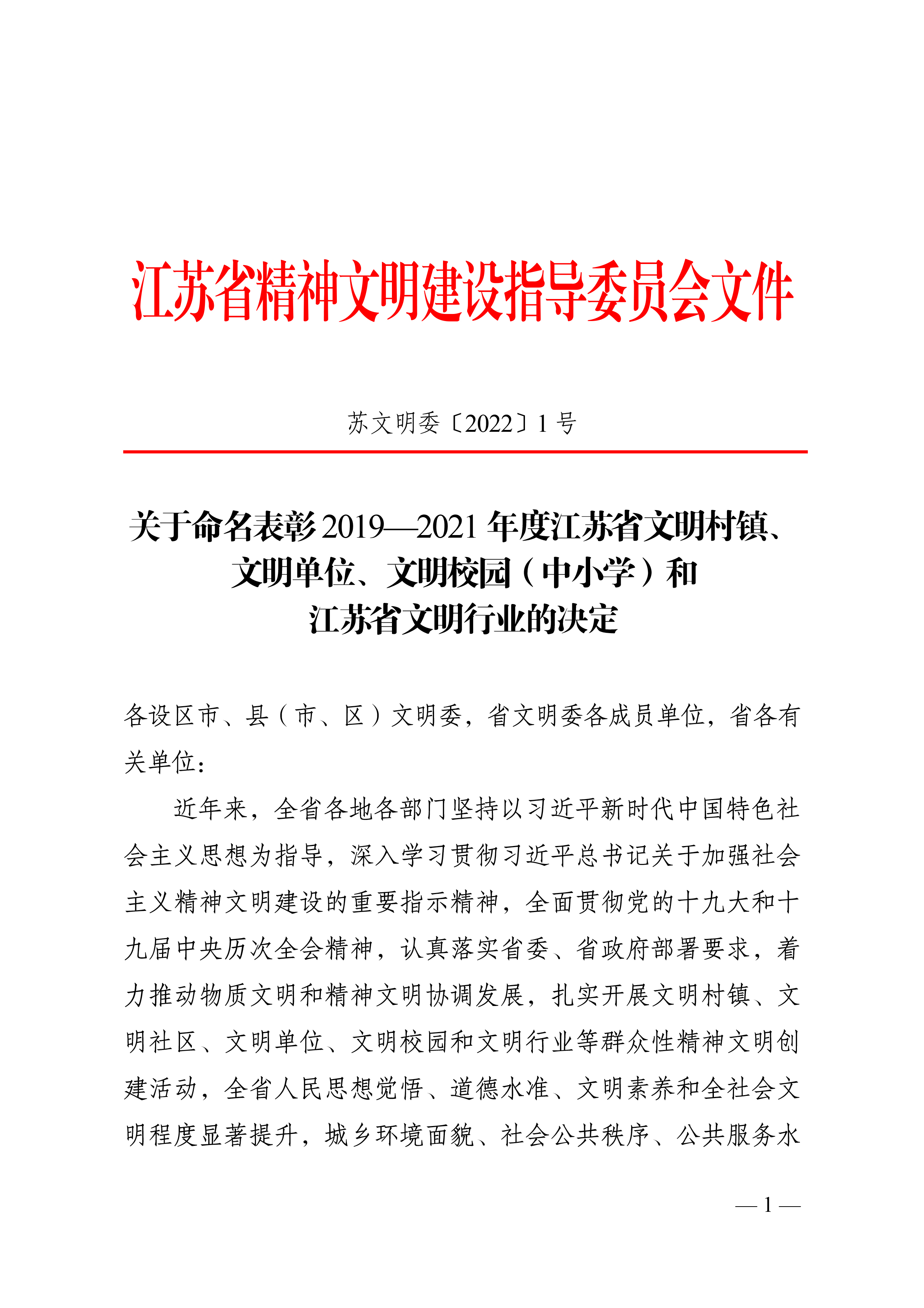 近日,全省宣传部长会议表彰了2019-2021年度江苏省文明村镇、文明单位、文明校园和江苏省文明行业。交通控股集团(本部)及权属5家单位荣获“2019-2021年度江苏省文明单位”称号。