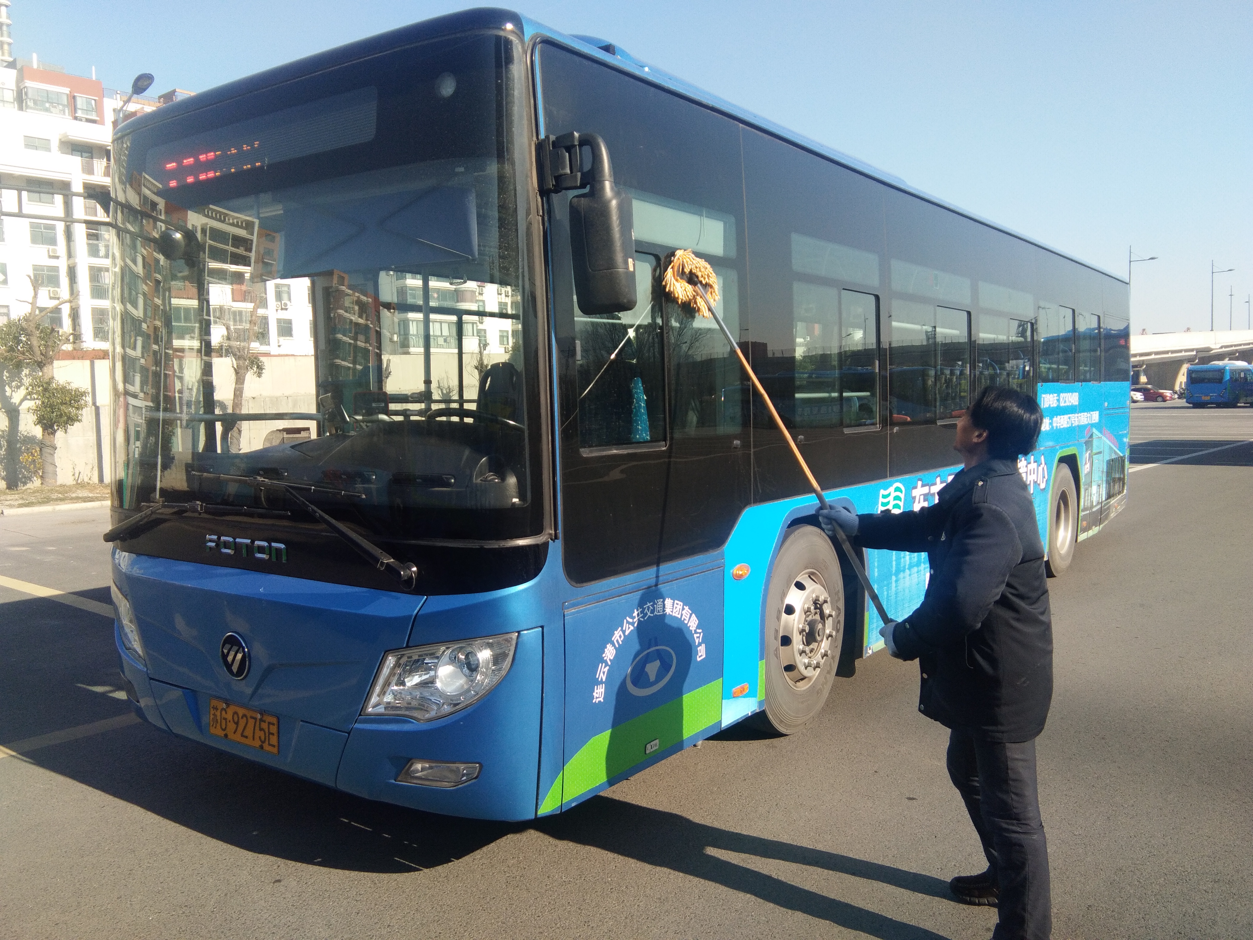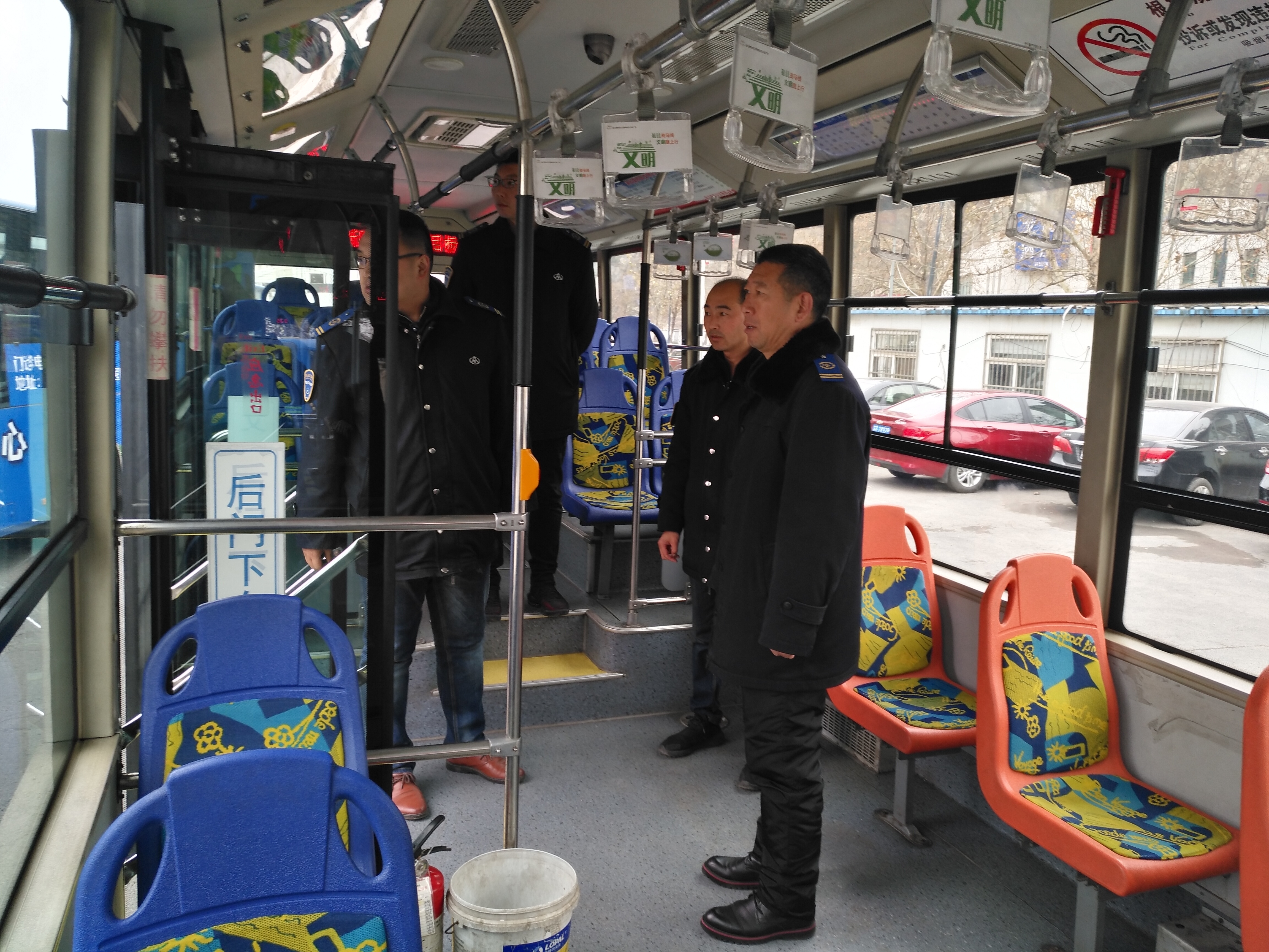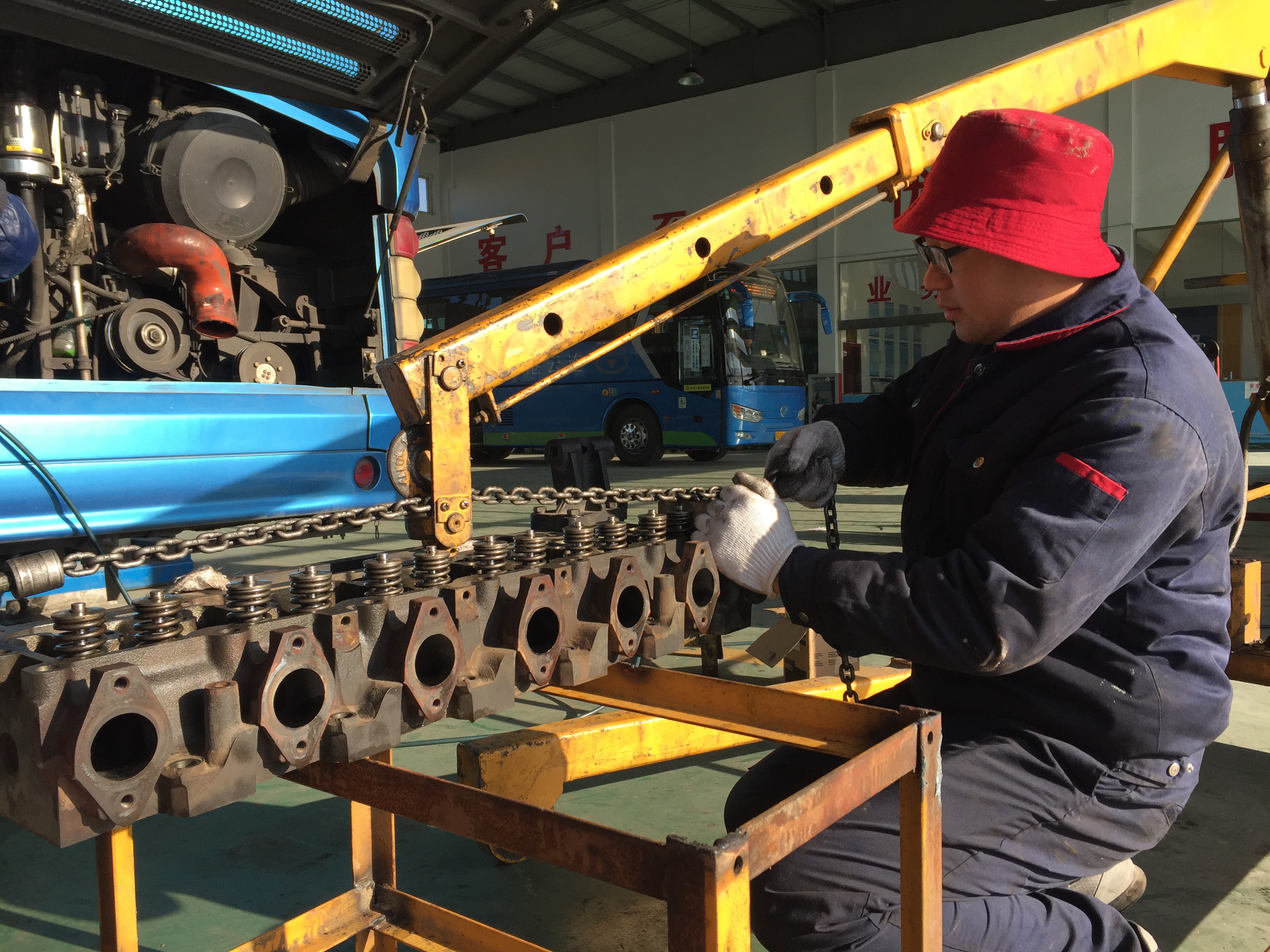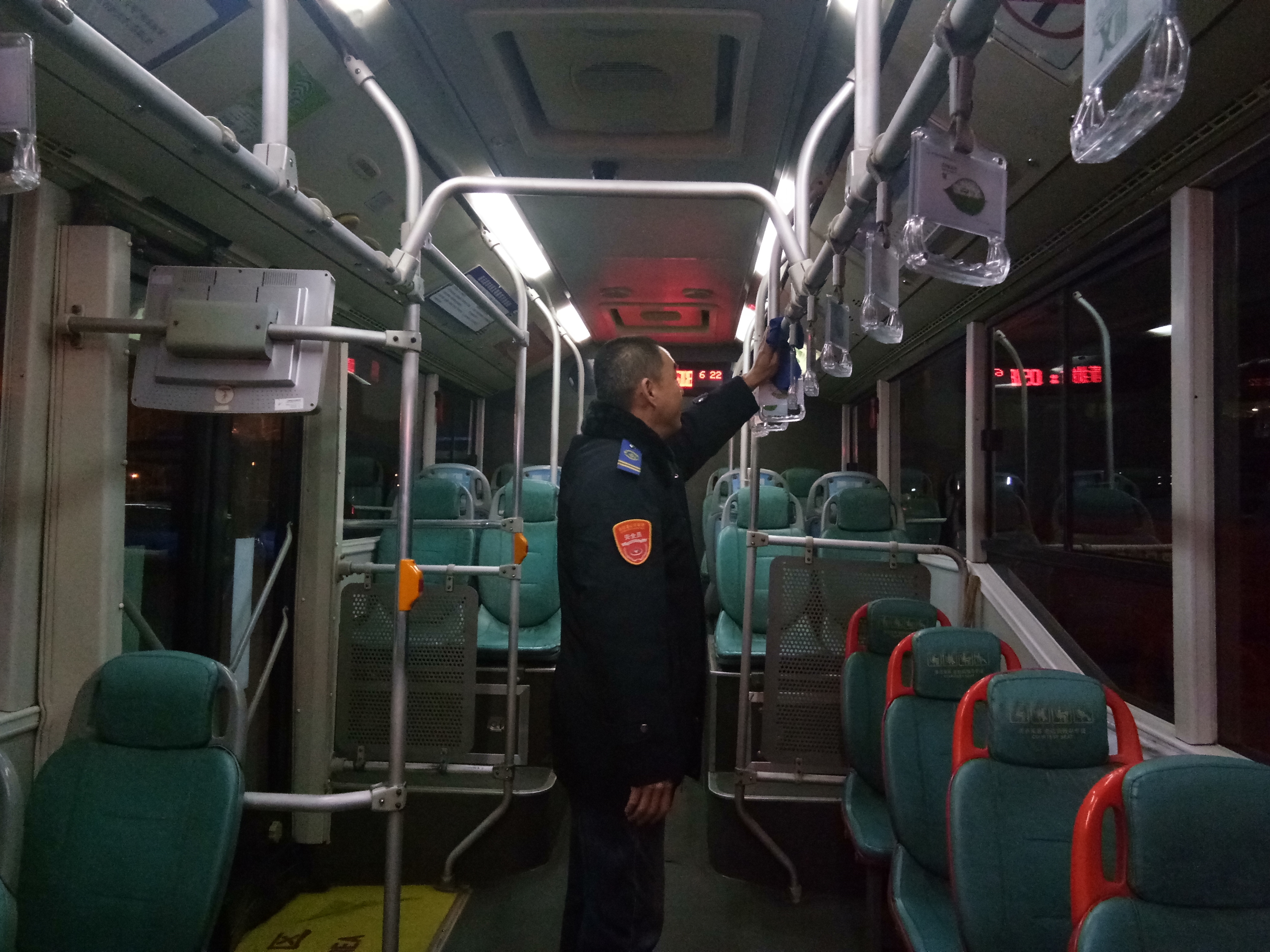 新一年第一天,安机人员认真维护公交车辆,见缝插针检查车辆的每个细节