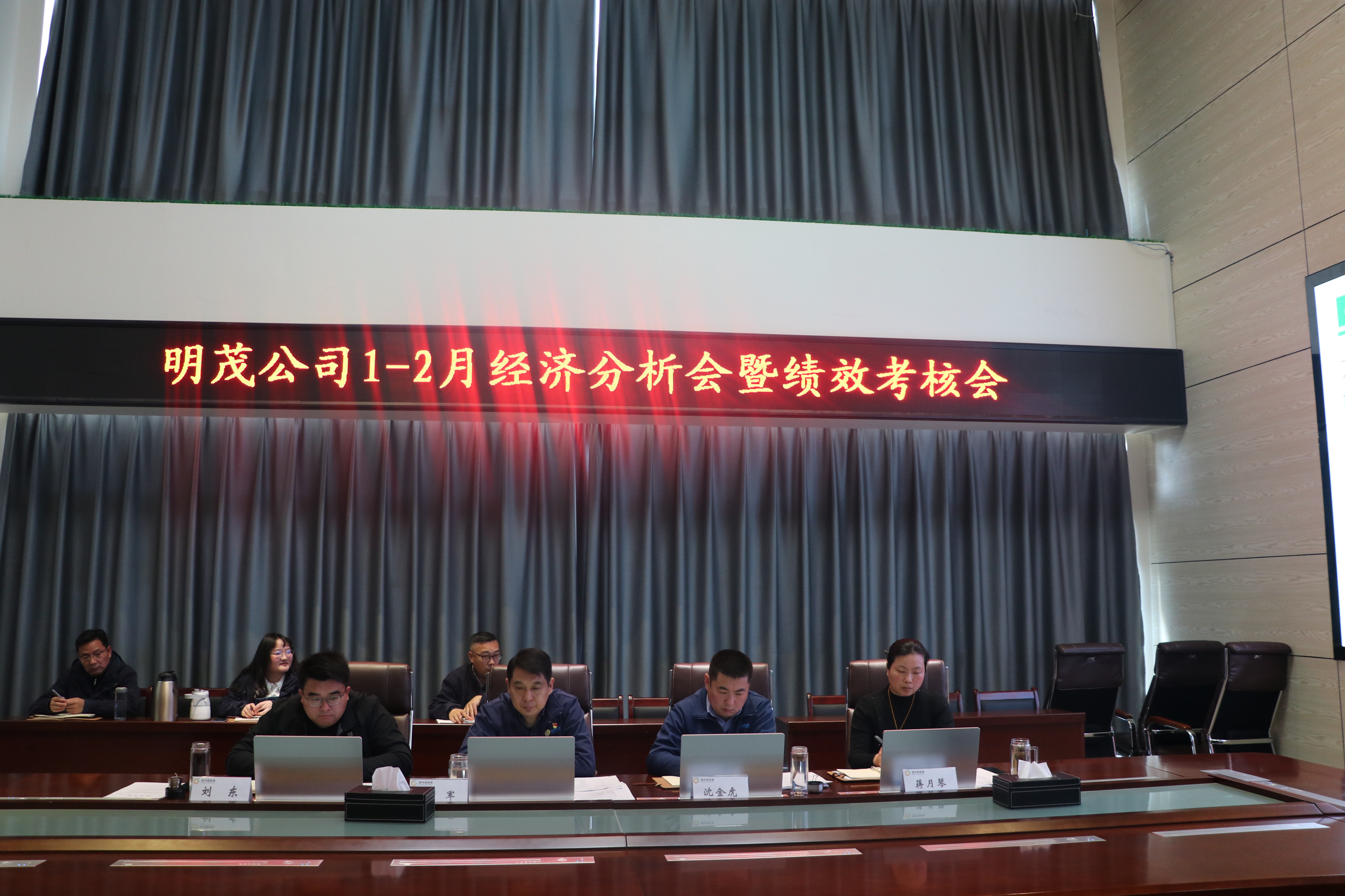 3月13日上午,明茂公司召开2023年1-2月份经济分析会暨绩效考核会,公司领导班子成员出席会议,公司各部门主要负责人及相关人员参加会议,会议由公司党总支书记、总经理袁军主持。