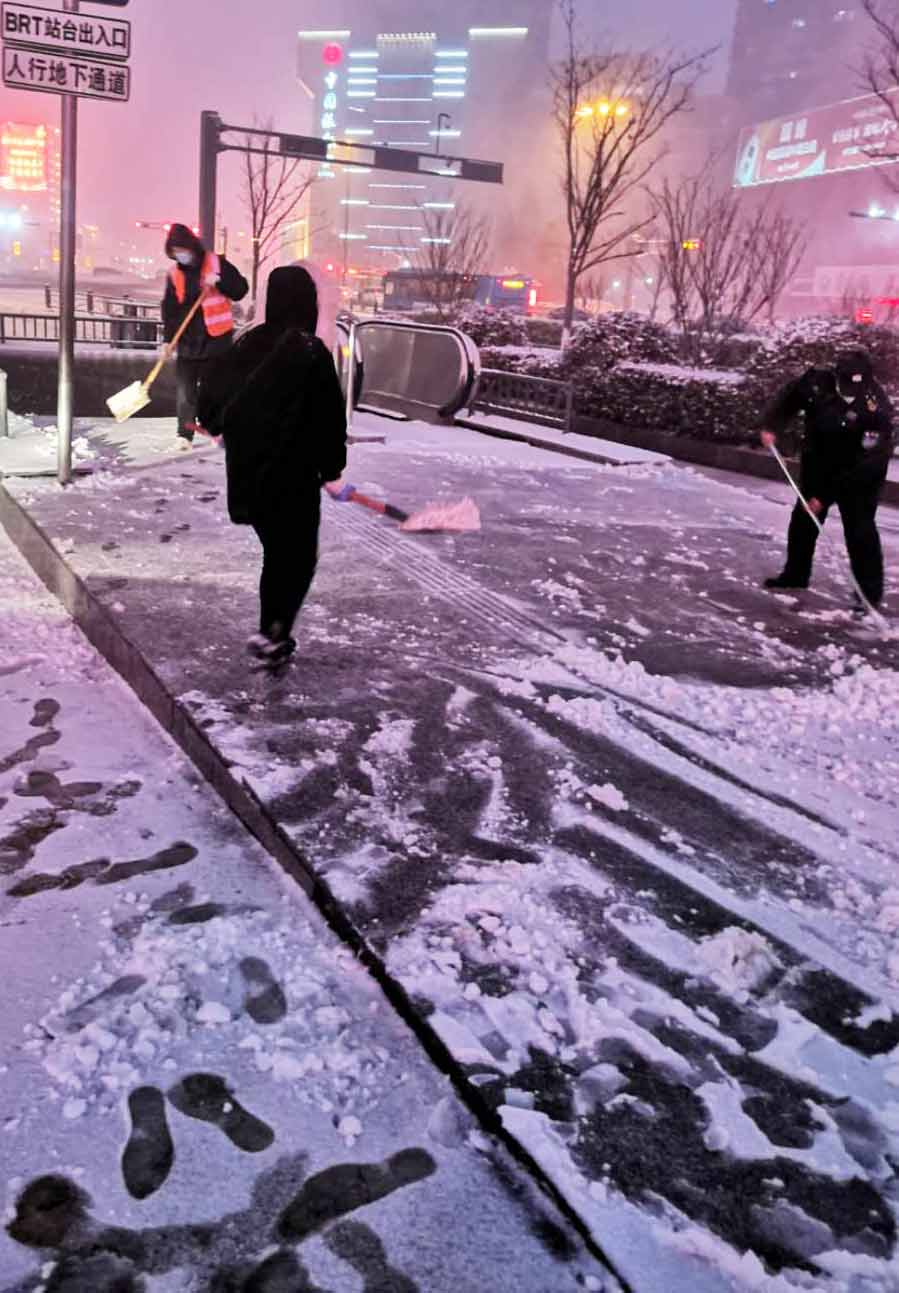 交通集团为BRT地下通道出入口扫雪