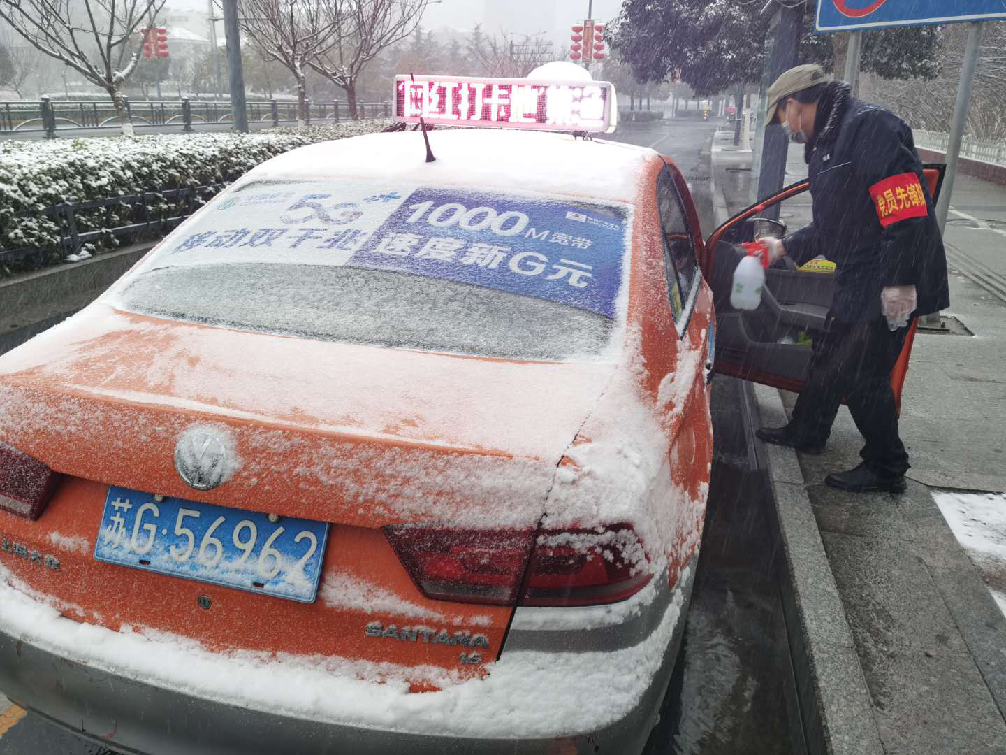 坚守一线为出租车消毒
