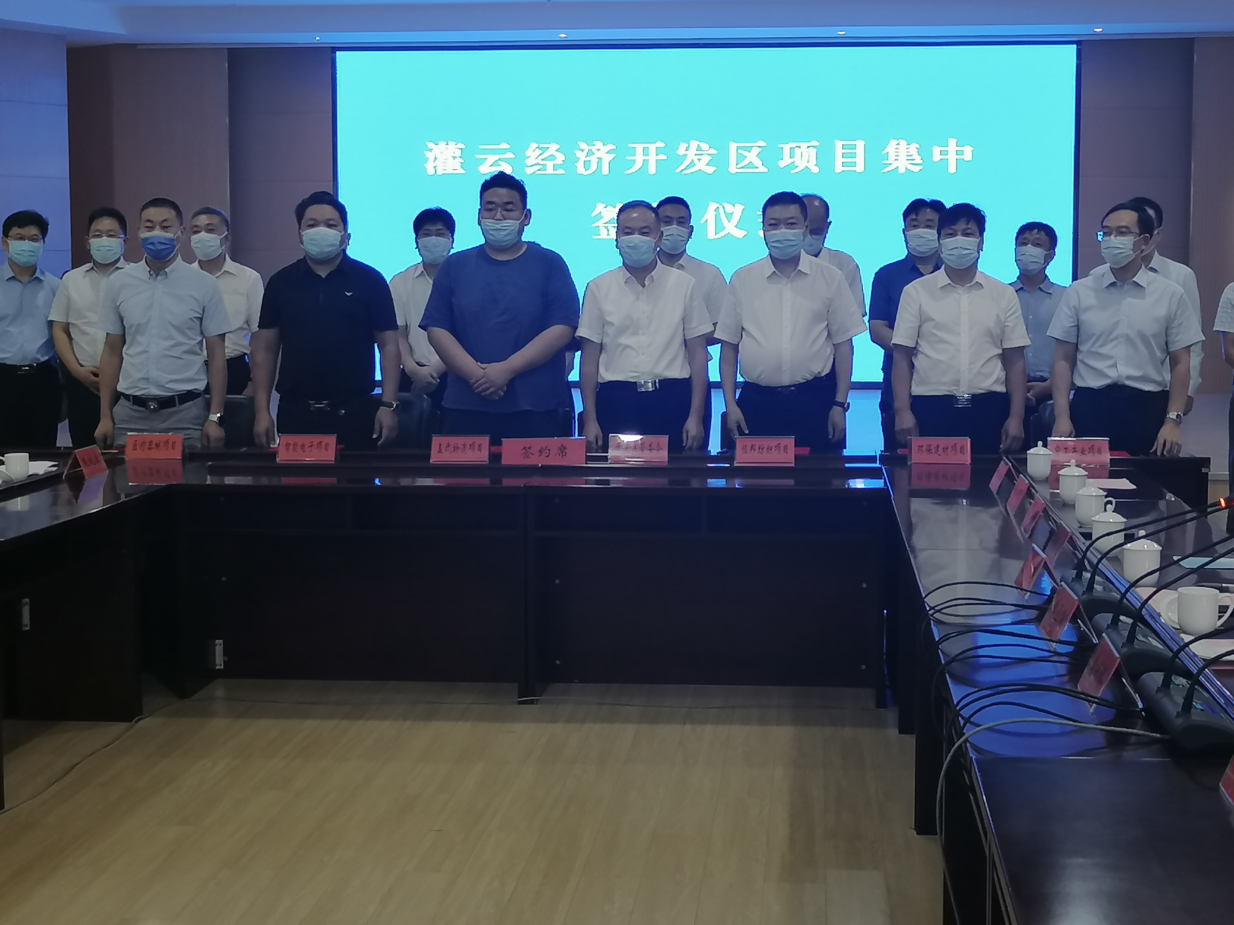 8月25日上午,灌云经济开发区项目集中签约仪式在灌云县政府举行,市商务局副局长孙瑾,灌云县委常委、开发区党工委书记赵敬,市交通控股集团副总经理孙超及灌云县相关领导出席活动,六家项目投资企业负责人参加签约仪式。