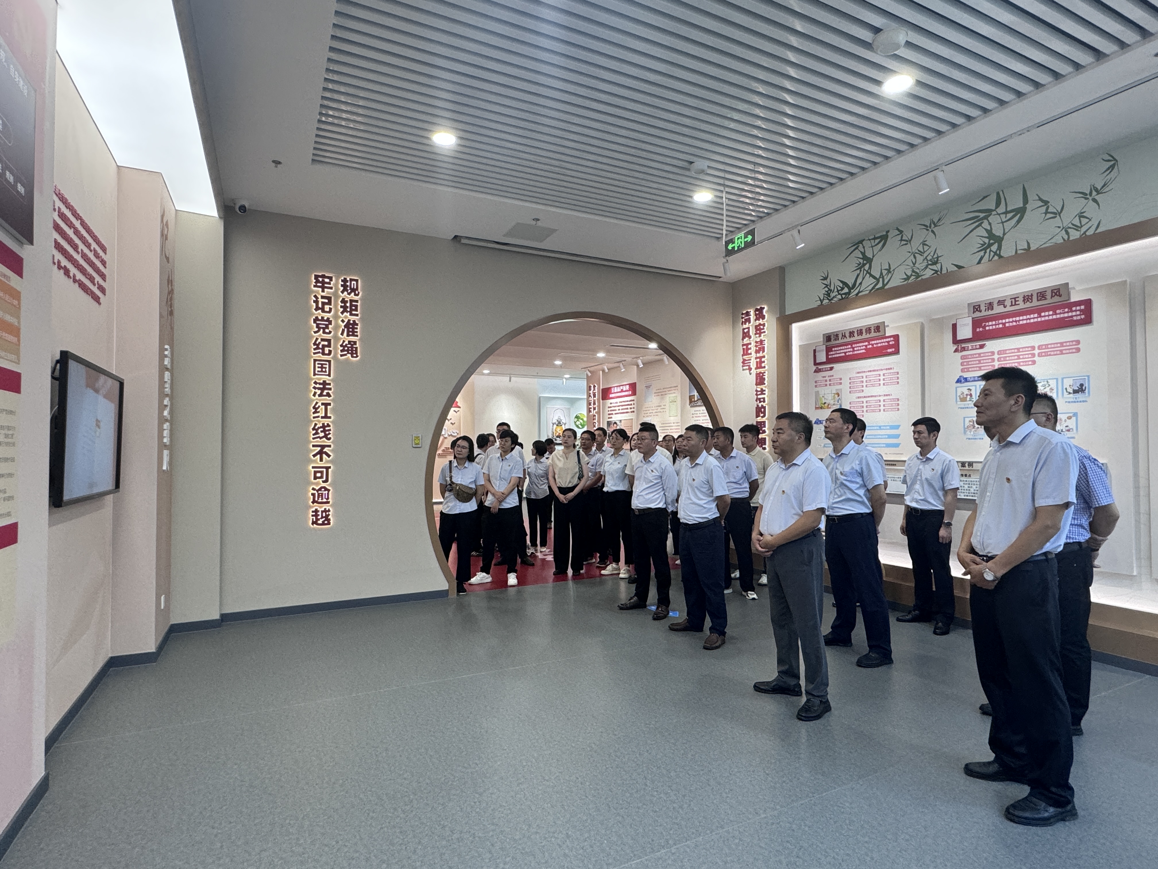 馆内“序厅”“以案为鉴”“以廉润心”“爱‘连’说”等主题展区,通过图片、文字、视频及实物等多种形式,让大家对廉政建设历程全面深入的了解。馆内丰富的展览内容和多样的展示形式,吸引参观党员干部们认真观看、听取讲解,并不时驻足讨论。VR全景展示方式不仅让大家在视觉上受到震撼,更加深了对廉洁文化的理解;廉洁故事及反腐案例剖析,将廉洁与腐败鲜明对比,正义与邪恶的强烈碰撞,坚定了坚守廉洁底线的决心和信念。大家表示,要时刻保持清醒头脑,加强自我约束,做到心存敬畏,慎独慎微,坚守底线,共同营造风清气正的从业环境。
