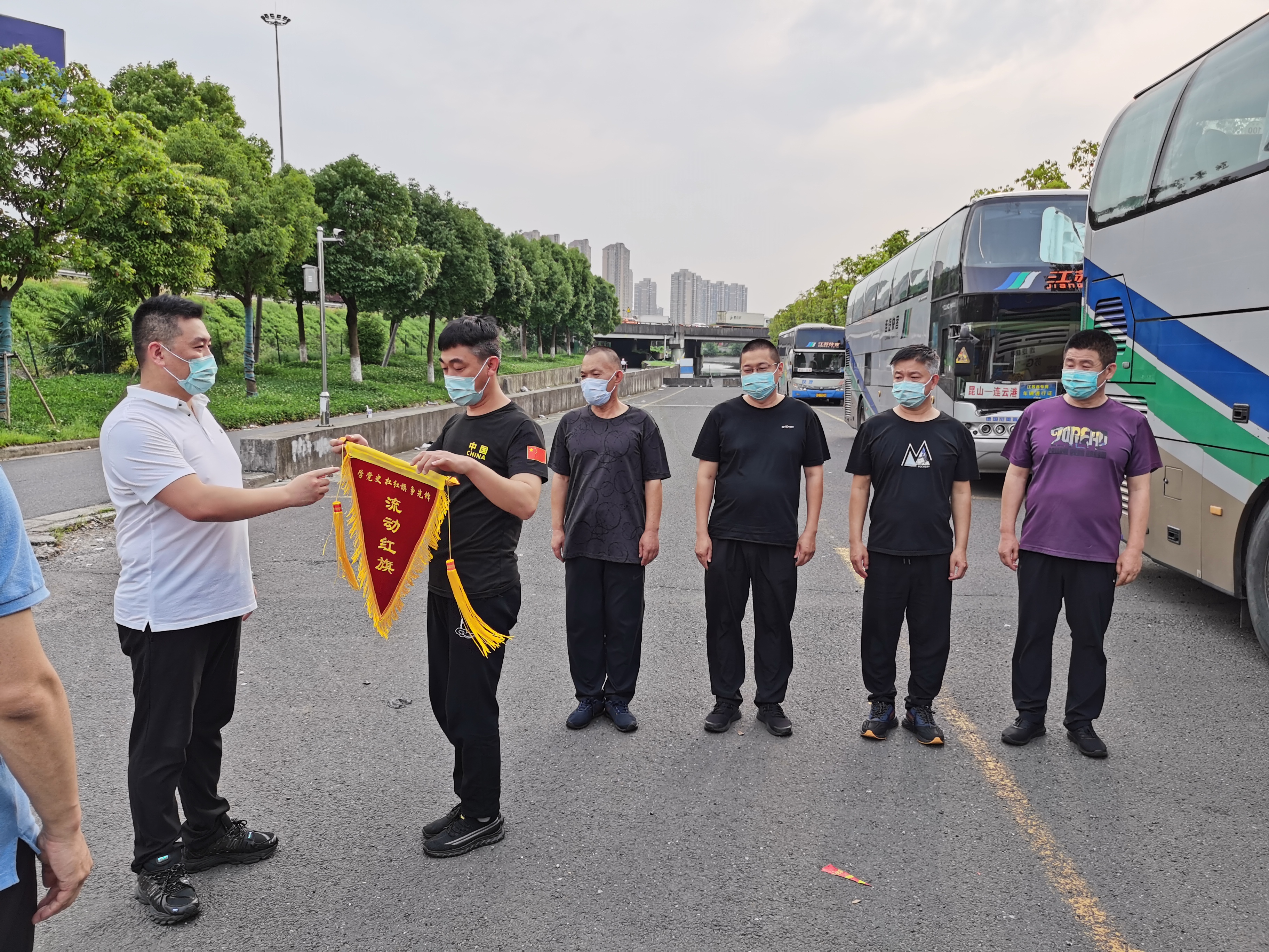 6月13日,连云港市涉外联防联控专项指挥部疫情专班组长李欣向连汽客运事业部驻昆山疫情防控专班授予“学党史 扛红旗 争先锋”红旗,对他们放弃假日休息,战高温,斗酷暑,发扬连续作战精神给予充分肯定和高度评价。