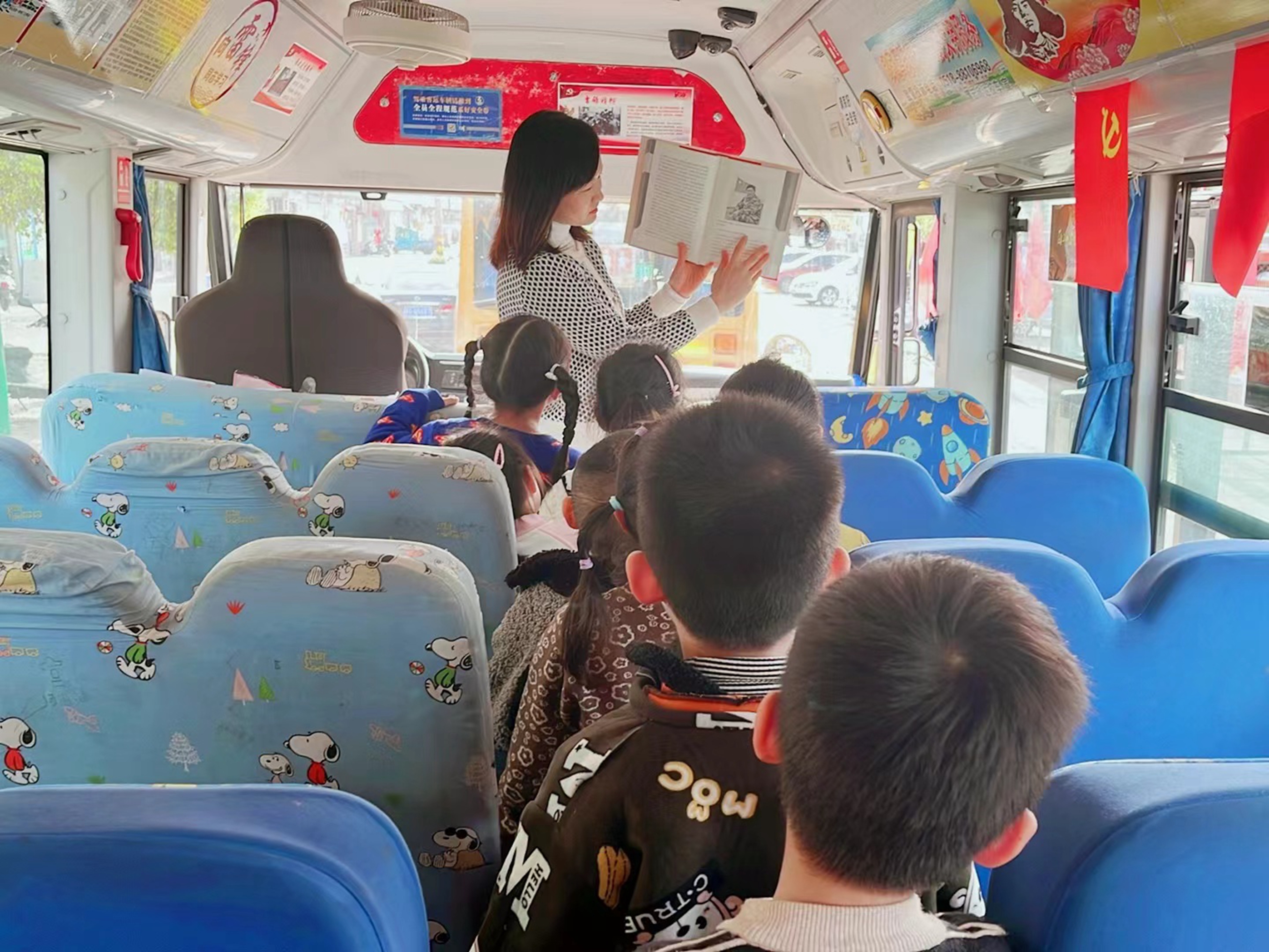 以书为媒,以阅读为纽带,整个车厢都浸润着浓浓的书香。伴着孩子们的朗朗书声,千年的文化古韵在行驶的校车中传颂。