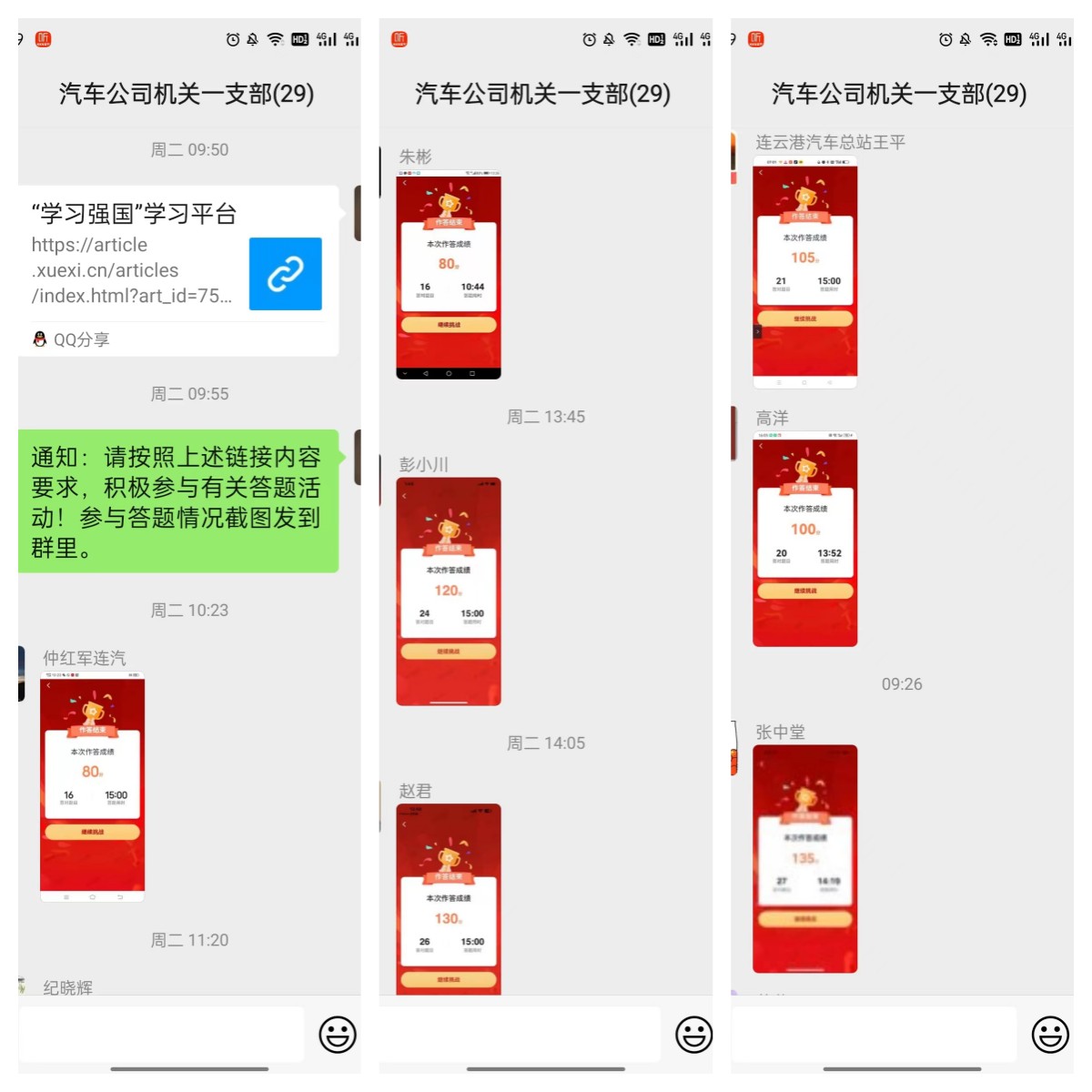 工作之余,学习强国总能成为汽车公司热议的话题之一。党员干部利用碎片化时间读文章、看视频,答试题。打卡晒图已成为党员每天的必修课。