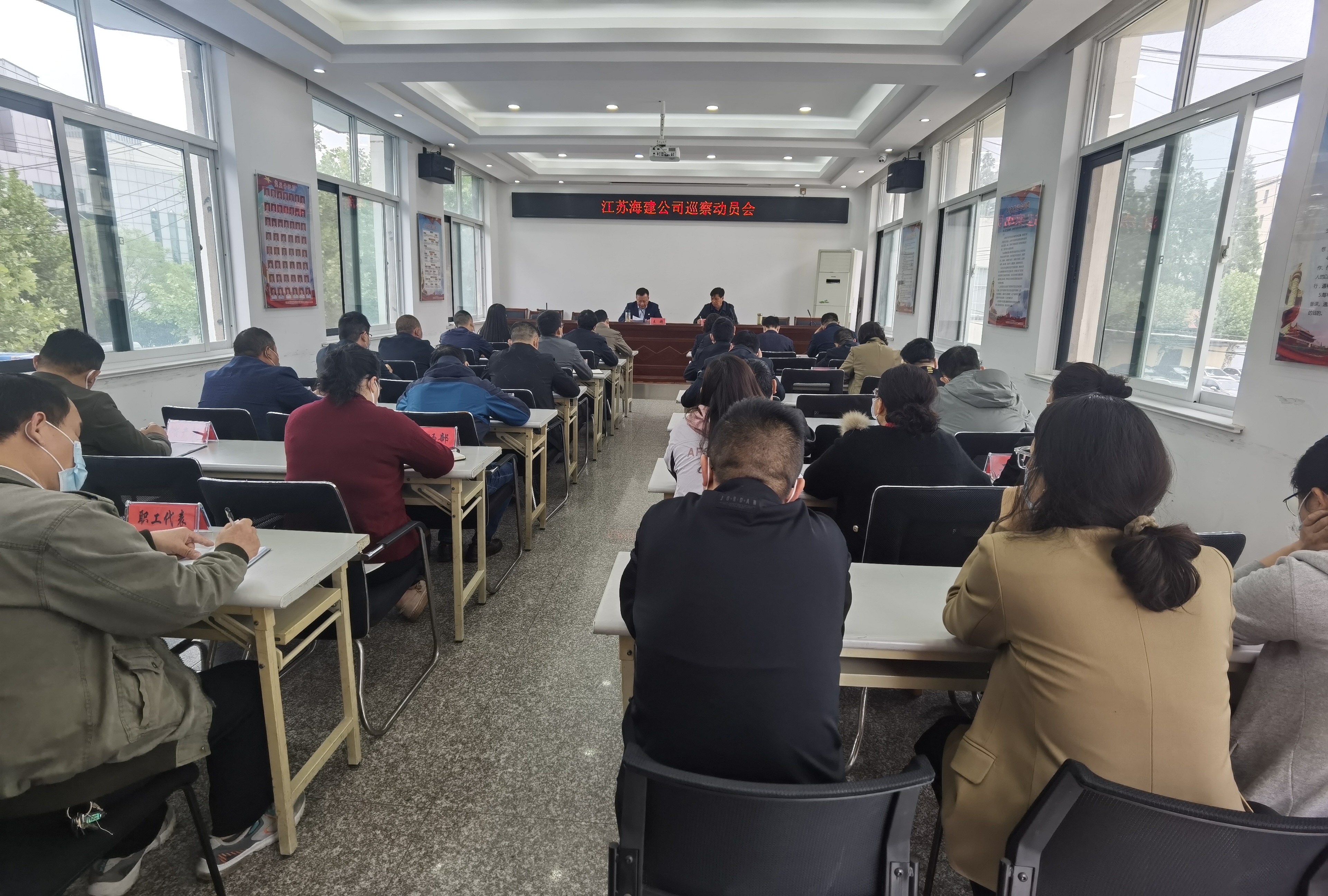 根据集团党委统一部署,5月9日上午,交通控股集团党委第一巡察组在海建公司召开巡察动员会。巡察组成员、海建公司领导班子、中层干部及职工代表共35人参加了会议,会议由公司党委书记、董事长仲济强主持。