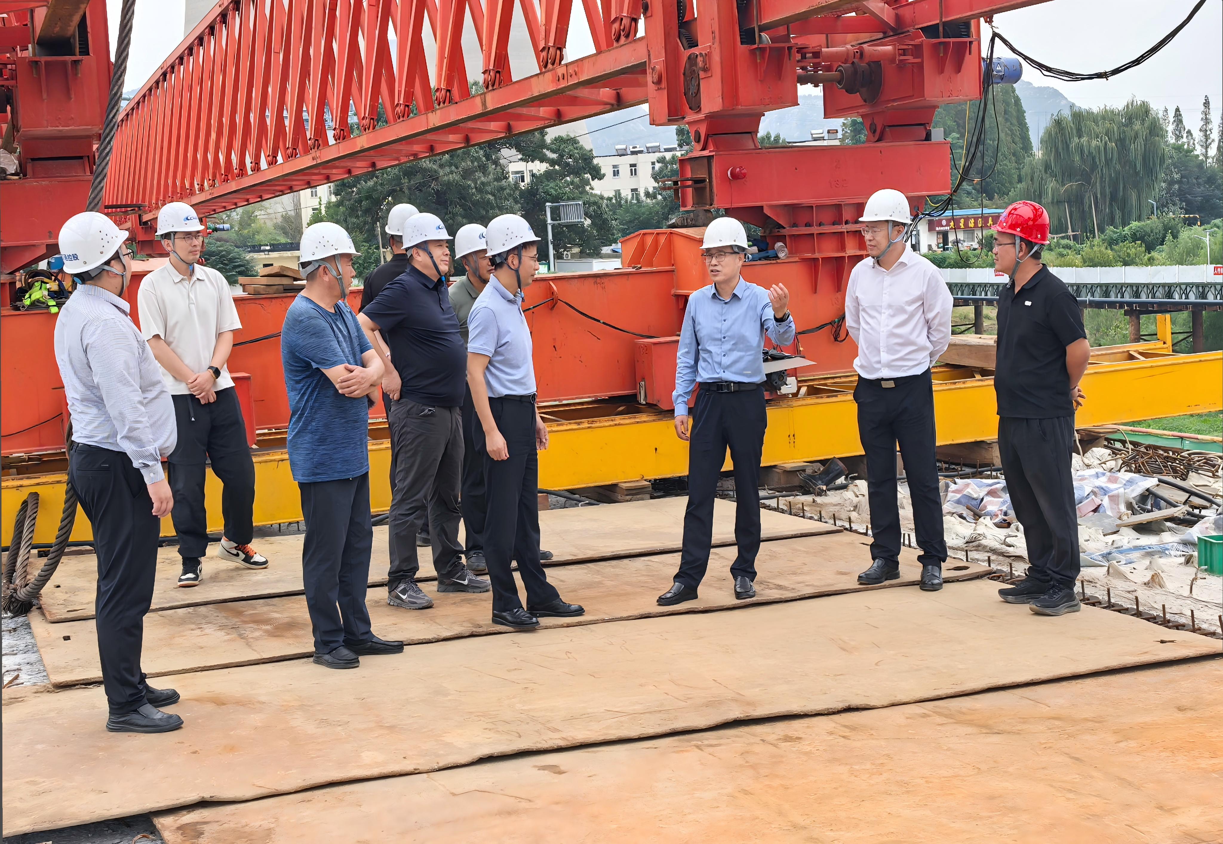 随后,视察组来到洪门大桥项目现场,听取项目负责人关于施工进展的汇报。大桥目前正处于冲刺攻坚阶段,仲伟涛强调,要始终坚持“质量第一、安全至上”原则,在抢工期、赶进度的同时,严格把控桥梁结构安全、桥面铺装质量等核心环节;要进一步优化施工方案,科学调配人力物力资源,紧盯关键节点,确保项目如期通车;要筑牢安全生产防线,加强现场施工人员安全培训与实操管理,从源头杜绝各类安全隐患。