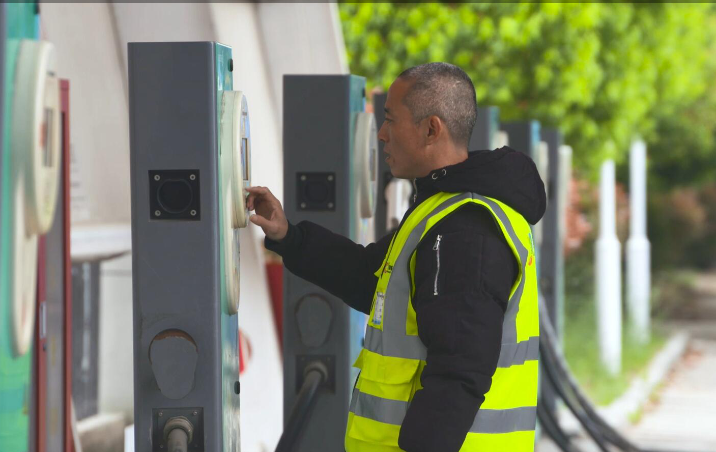 他—董梁,江苏明茂新能源科技有限公司充电工,也是一名中共党员。1997年他从部队复员后被分配到公交集团工作。走过春秋、渡过冬夏,弹指挥间几十载。几十载的人生耕耘,寒来暑往,花谢花开,让这位个头不高却已过不惑之年的他、历练出了宽容待人、随遇而安的胸襟。他干过驾驶员、售票员、收银员等各种不同的岗位。自2016年1月,明茂新能源公司正式投入运行时,他又被调到明茂新能源公司西城充电站做一名充电工。他的家距离上班的充电站要有很远的一段路程,而且家中上有年迈的老母亲要照顾,下有刚上小学的孩子要每天接送。他深知干充电工作的辛苦,不仅要起早贪黑,还经常不定时上下班,但是他没有任何情绪和怨言,而是非常乐观积极的投入工作。为尽快融入充电工这个角色,他不懂就问、不会就学,短短几天的时间,他便学会了如何操作和遇到突发情况时的应急处理。