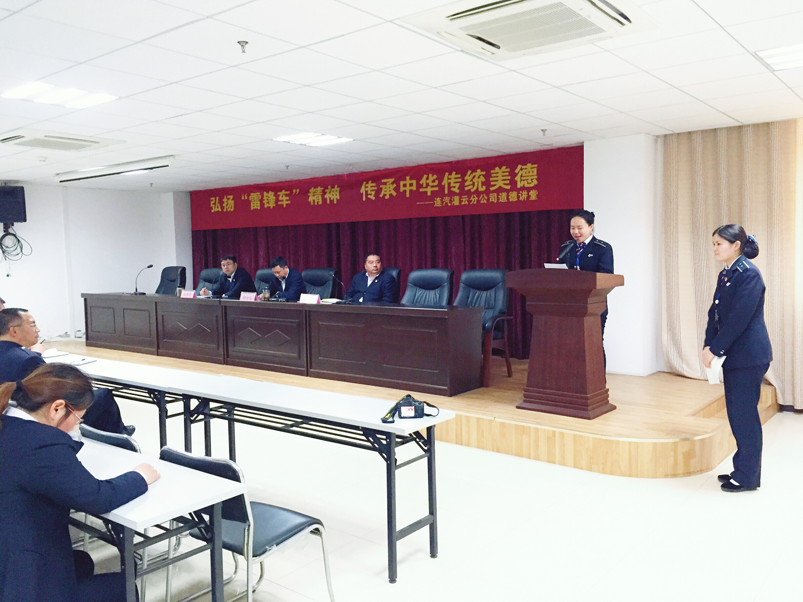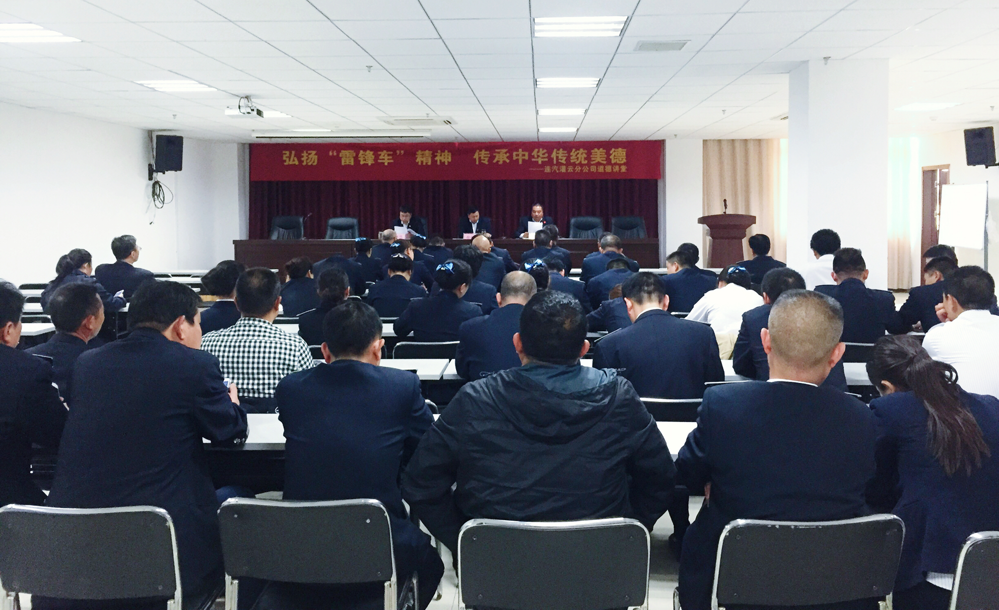 4月28日下午,灌云公司组织全体职工,在二楼会议室开展了道德讲堂活动。活动以弘扬“雷锋车”精神,传承中华传统美德,倡导文明新风,做新时代客运企业文明标兵为主题。活动由副经理张洪伟主持。