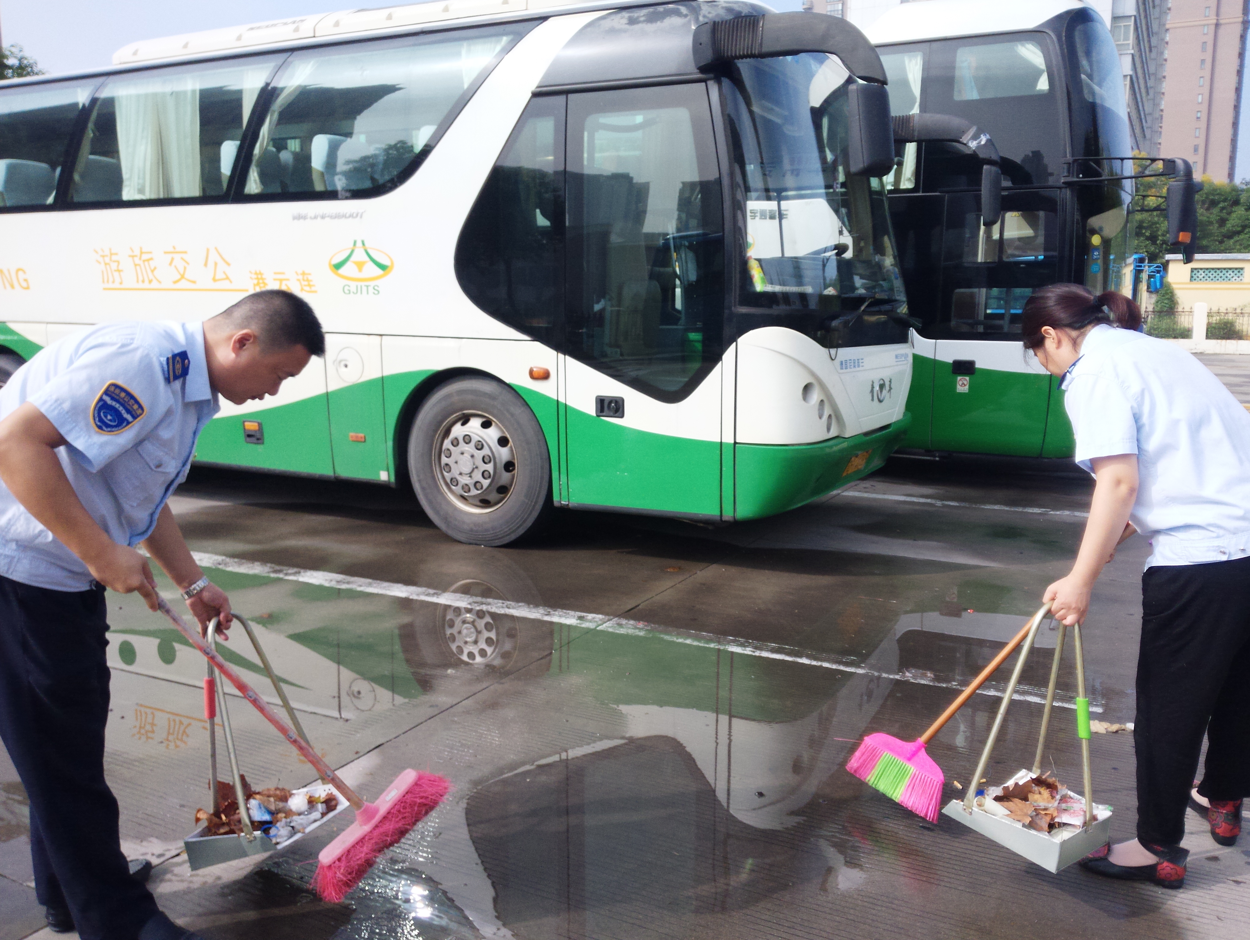 中秋将至,为营造整洁卫生的出行环境和欢乐祥和的节日氛围,9月21日,公交集团旅游公司组织开展场站环境卫生整治工作。
