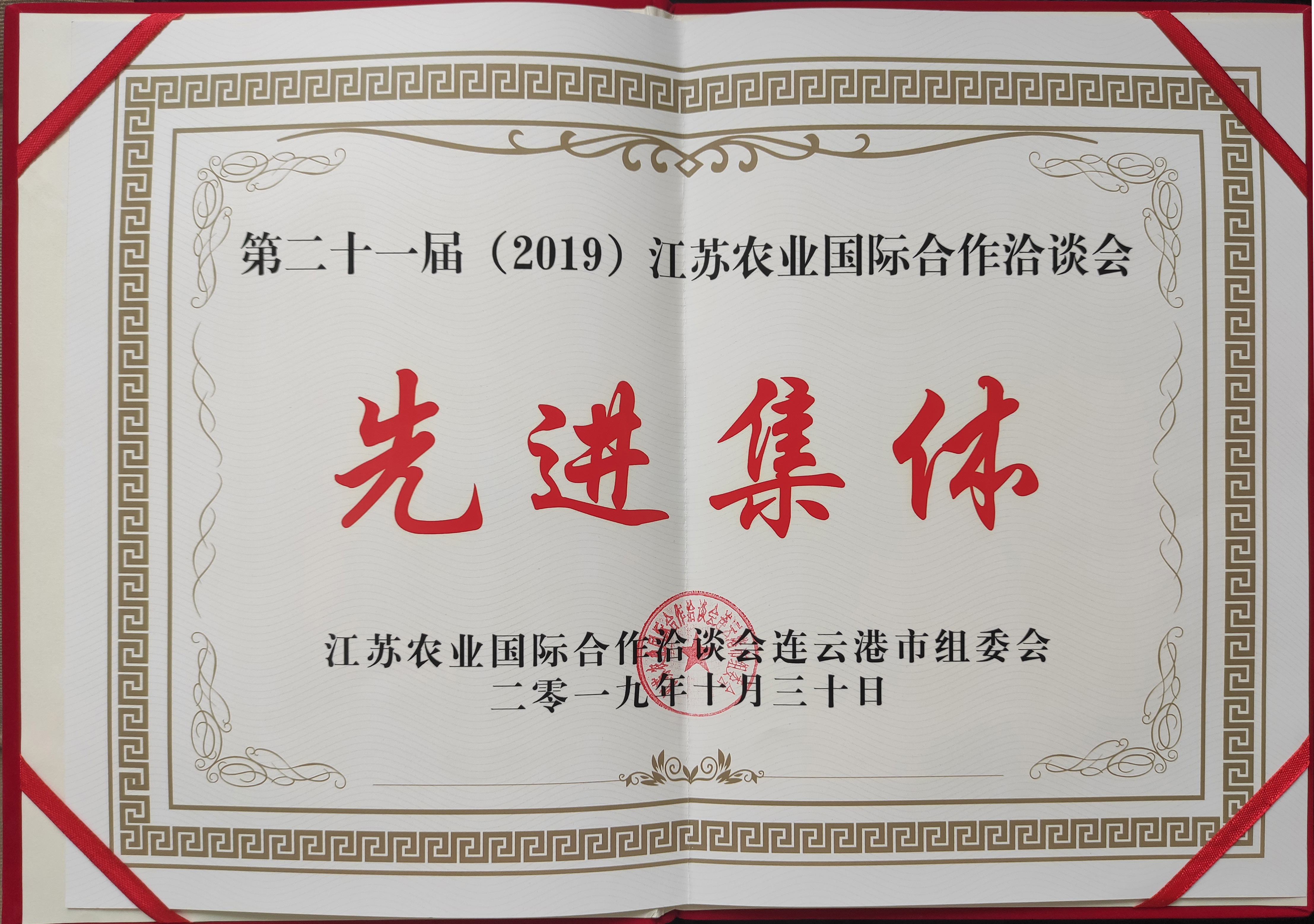集团被评为“第二十一届(2019)江苏农业国际合作洽谈会先进集体