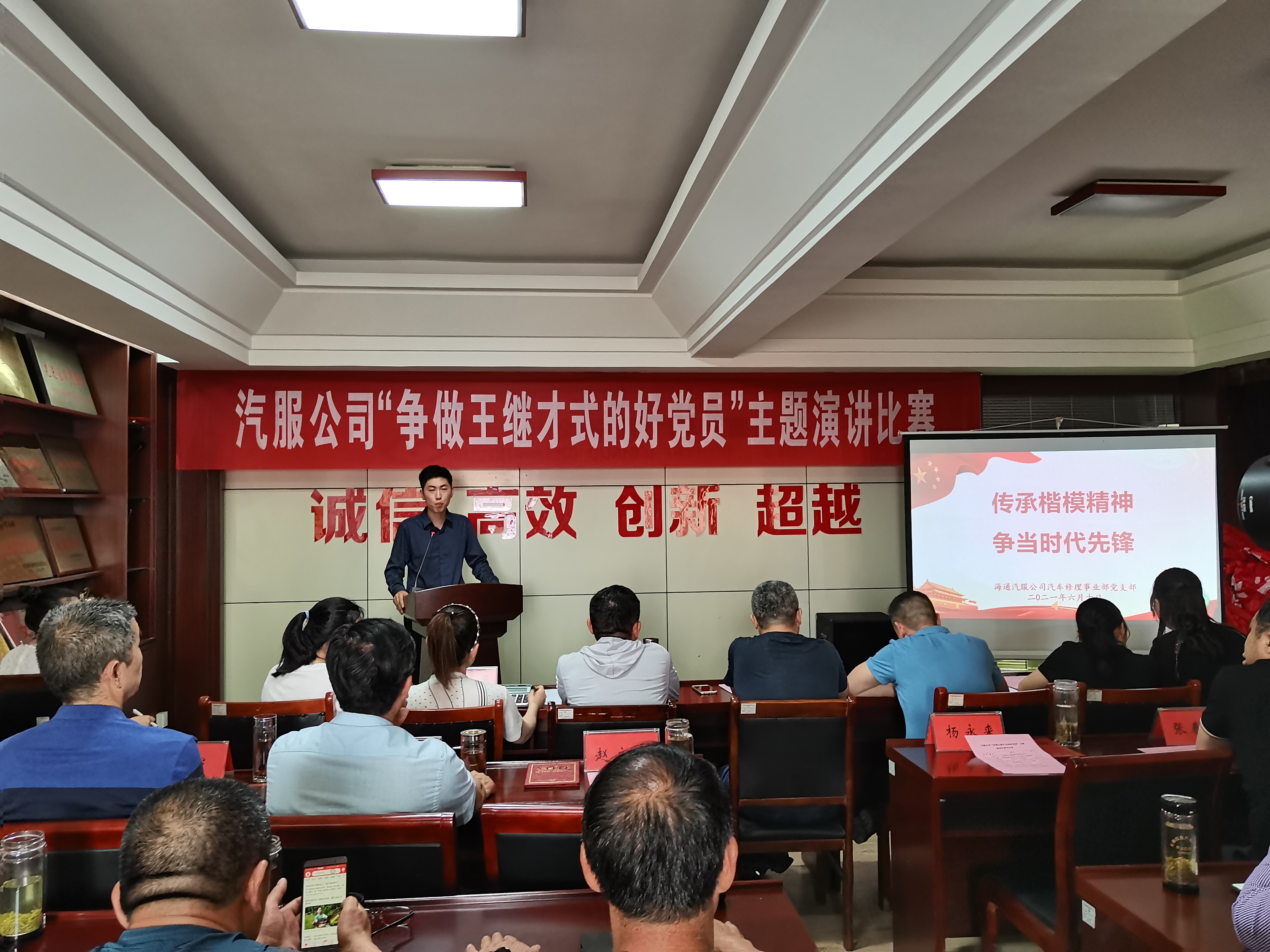 为扎实开展党史学习教育,传承红色基因,发挥先进典型的示范引领作用,学习人民楷模王继才同志对党忠诚、信念坚定的政治品格,胸怀祖国、爱岗敬业、舍家为国的奉献精神,6月10日下午,汽服公司举办“争做王继才式的好党员”主题演讲比赛。公司党员干部50余人参加。