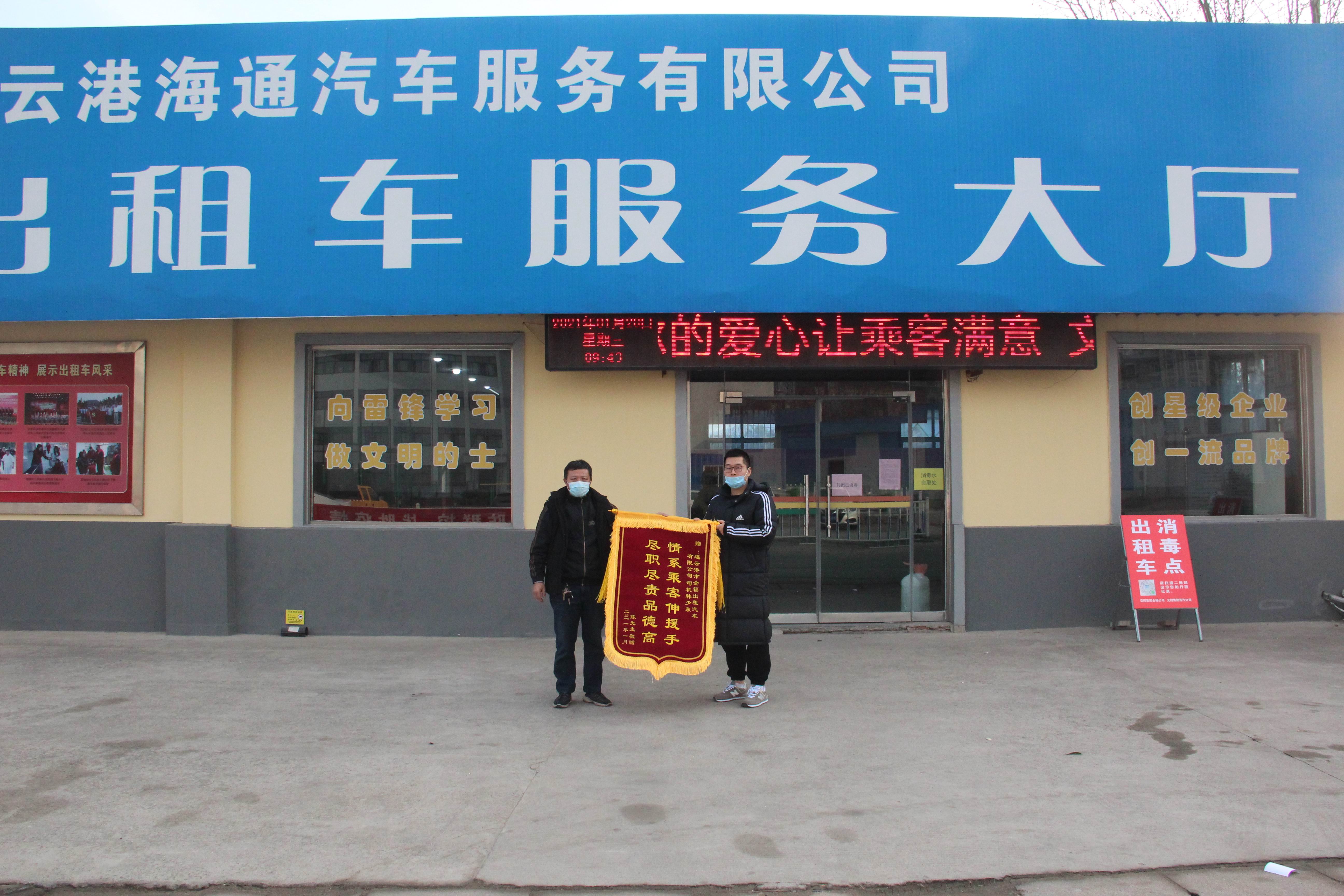 1月25日上午,身体刚在恢复中的市民陈先生怀着感激之情,来到全福公司将一面锦旗递交到的哥韩少东手中说:"早就应该来感谢你,很不好意思"。