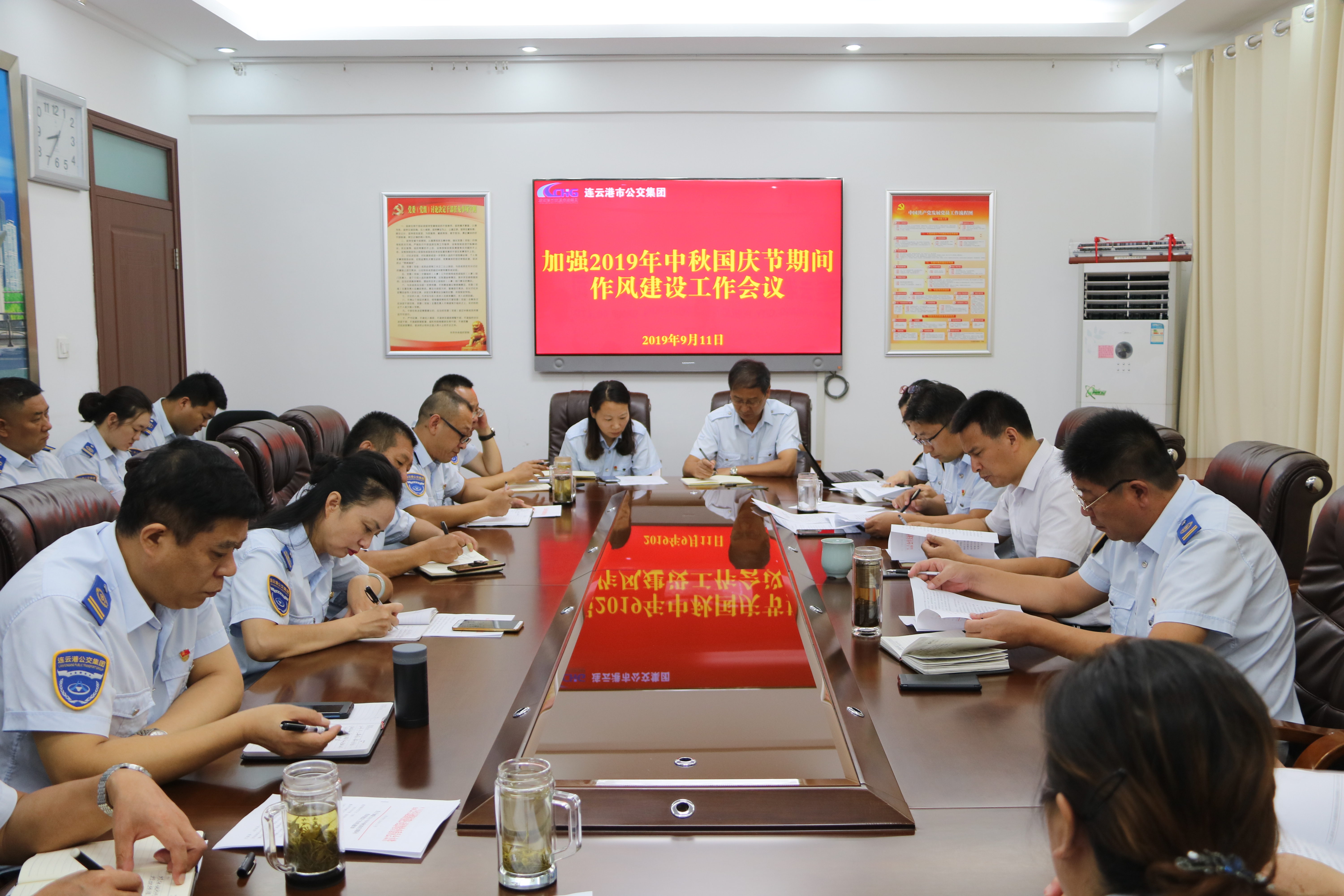 会议传达了连云港市交通控股集团《关于加强2019年中秋国庆节日期间作风建设工作的通知》精神,安排部署了公交集团两节期间作风建设工作,明确中秋国庆两节期间党风廉政建设工作要求,打好节日廉洁“预防针”。